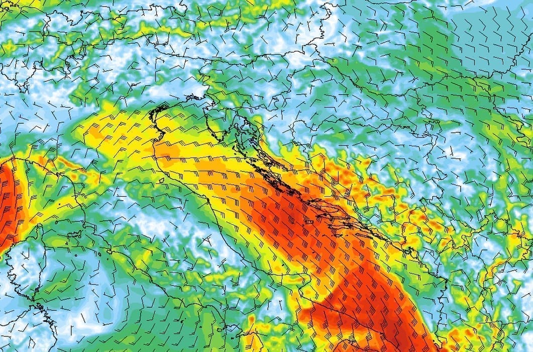 Sljedećih 48 sati na vrijeme na našem području će intenzivno utjecati ciklona koja donosi kišu, južinu i relativnu toplinu. Njen centar trenutno se nalazi nad Afrikom, točnije na području Tunisa. On će se do kraja dana prvo premjestiti nad Italiju, a u petak i nad Jadran.