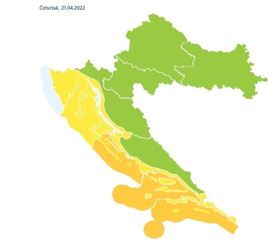 A Jadranka već danas donosi probleme s jugom i to krajem dana i osobito u noći na petak kada su na moru mogući udari do 100 km/h. Zbog toga je DHMZ izdao narančasto upozorenje.