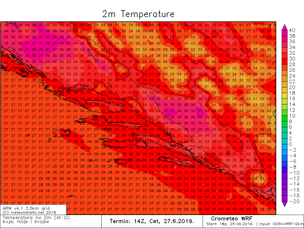 Naime, sljedeća dva dana bit će natprosječno toplo, a u četvrtak i petak u dijelovima Dalmatinske zagore temperature mogu porasti do oko vrlo vrućih 38°C. Uz obalu i na otocima temperature će mjestimice dosezati 35°C.