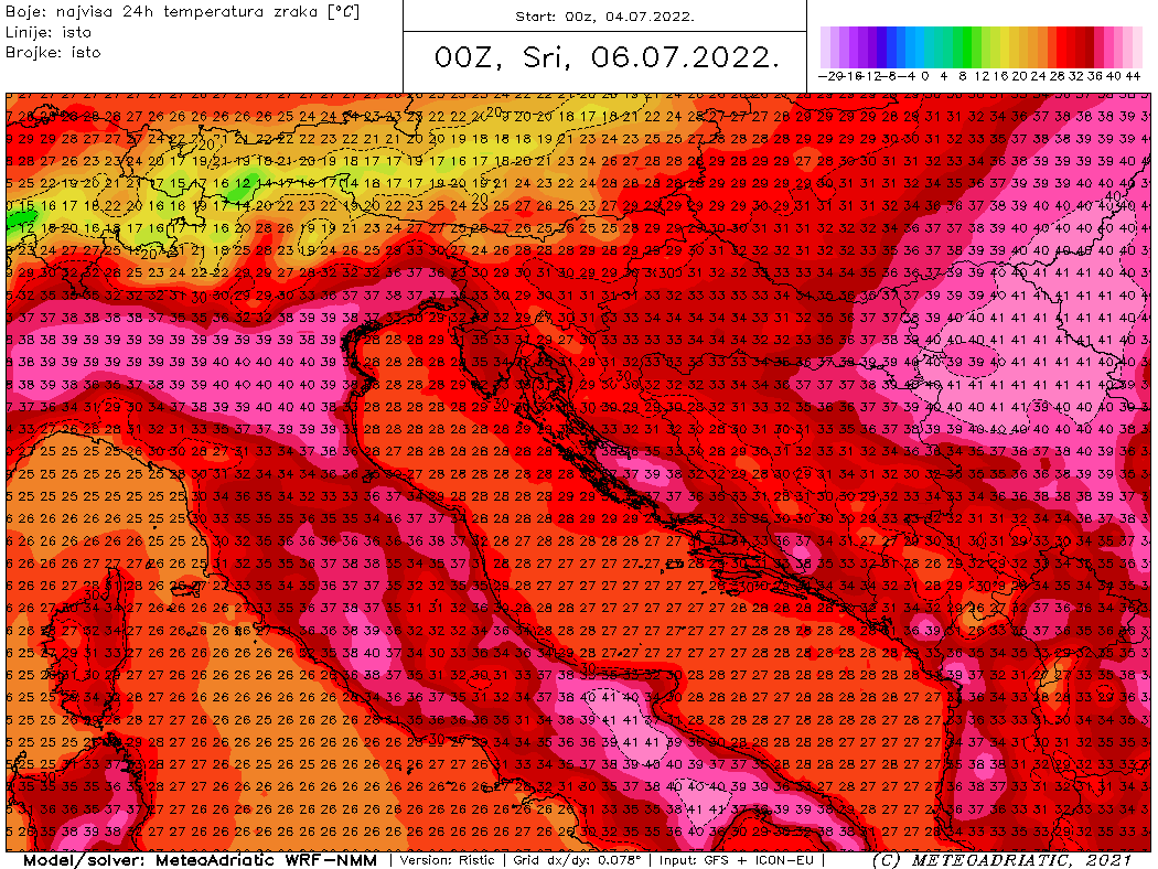 Temperature su izrazito visoke i na početku srpnja. Tako su i danas najviše dnevne temperature bile od 32 do čak 39°C ponegdje u dolini Neretve.