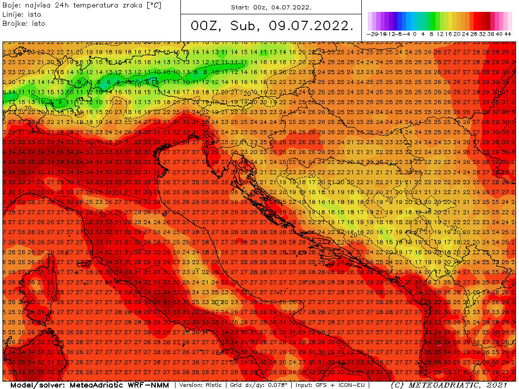Četvrtak će biti pretežno sunčan. Ujutro i navečer će puhati umjerena, ponegdje i jaka bura. Danju vjetar u okretanju na zapadnjak i sjeverozapadnjak, jači prema otvorenom. I dalje vruće i vrlo vruće, najviše dnevne temperature od 30 do 37°C.