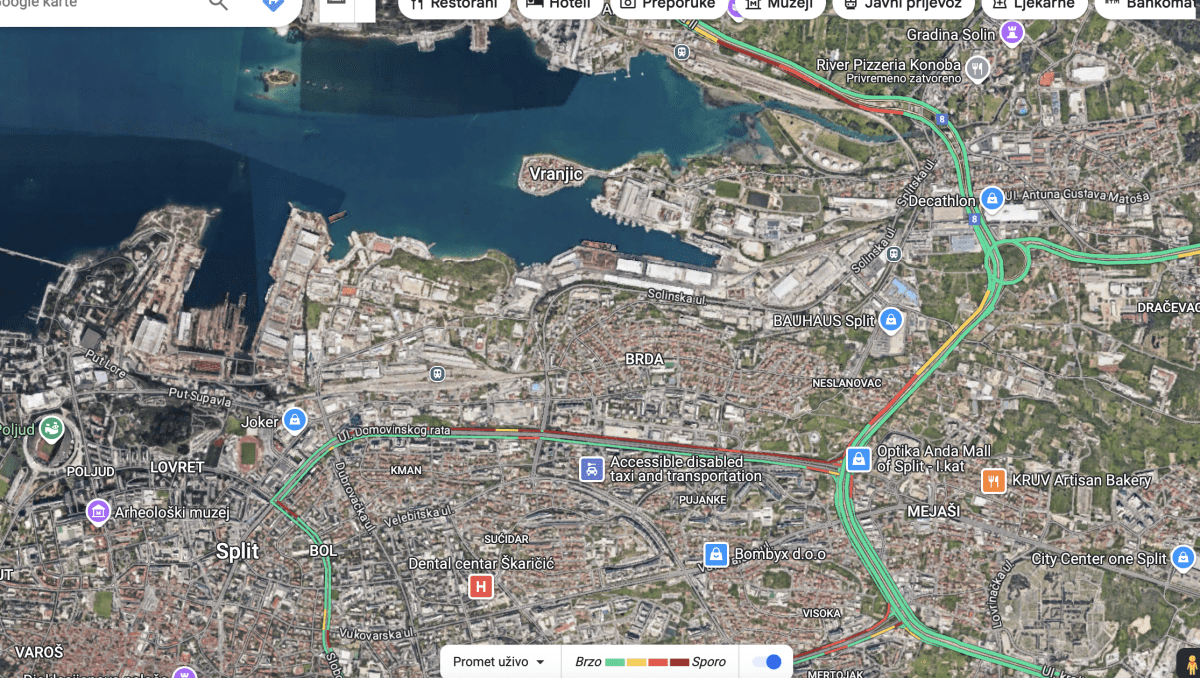 - Jadranskoj magistrali (DC8) između Kaštela i Splita te Podstrane i Stobreča;
