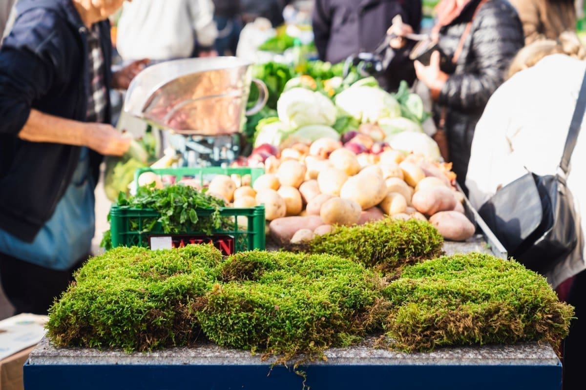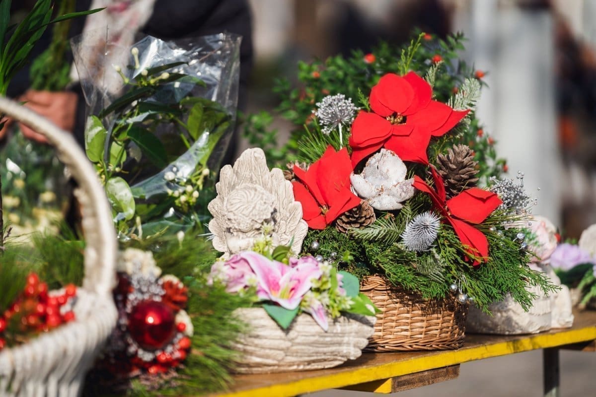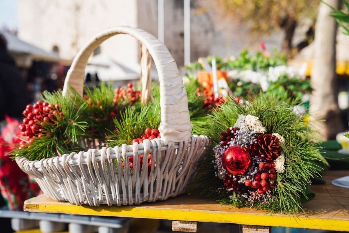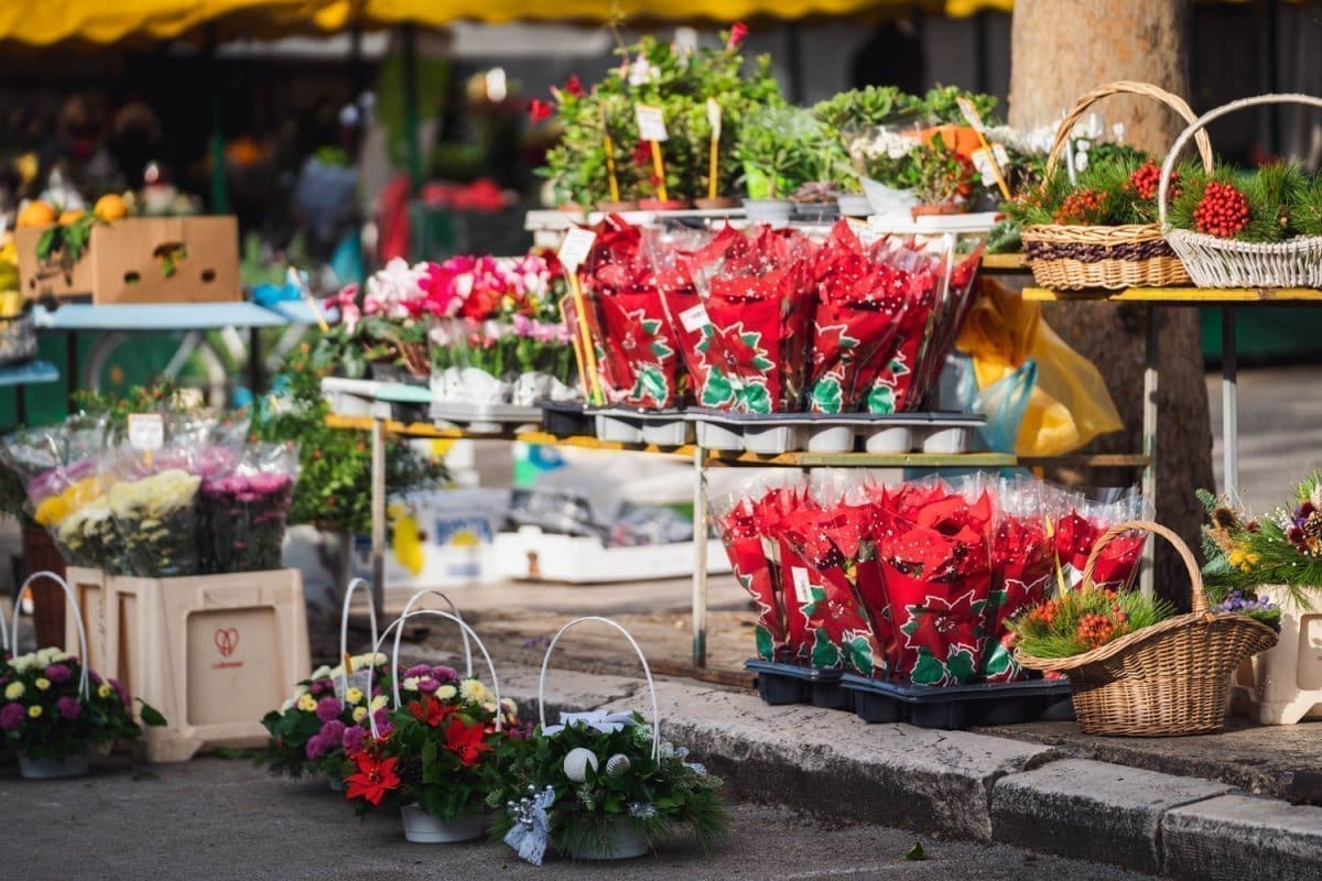 U moru zelenila, mandarina, jabuka i ostalih vitamina, naići ćete na koji banak s mahovinom, borovom grančicom, a ima i božićnih zvijezda. Nije baš da se mahovina ističe, ali naći ćete je nakon što bacite đir Pazarom.
