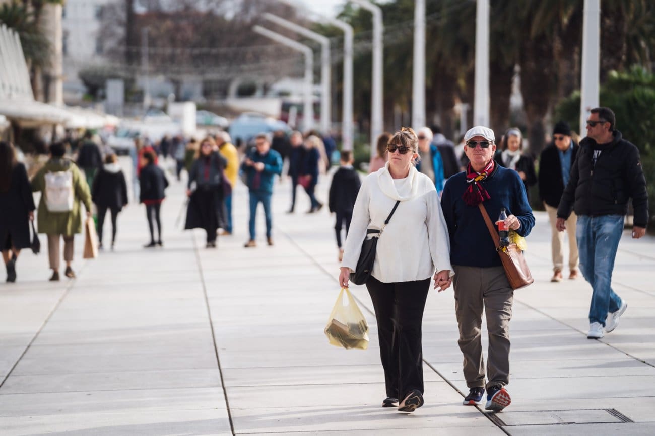 Iako je današnja srijeda u Splitu bila oblačna i tmurna, to nije spriječilo brojne Splićanke i Splićane da uživaju na najpoznatijoj gradskoj šetnici. Unatoč neidealnim vremenskim uvjetima za ispijanje kave na otvorenom, mnogi su iskoristili suho vrijeme za kratki predah i šetnju.