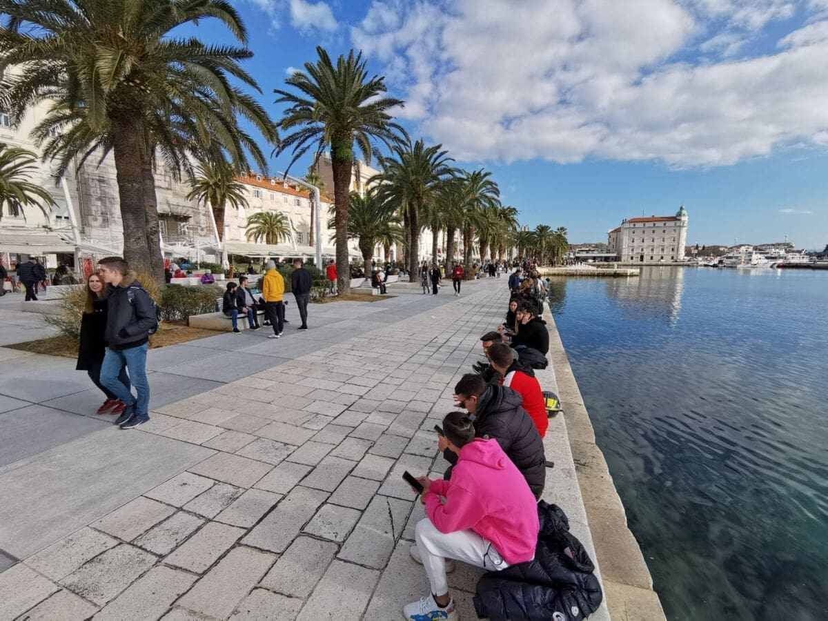 Centar grada danas je živnuo. Lijep i sunčan dan izmamio je Splićanke i Splićane na sunce, a Riva se pretvorila u jedan veliki štekat.