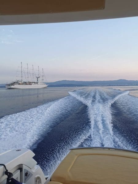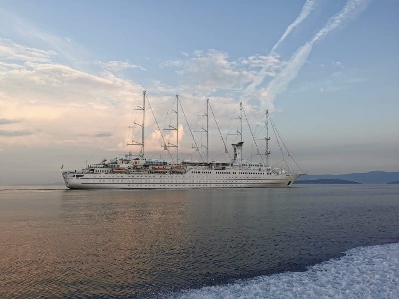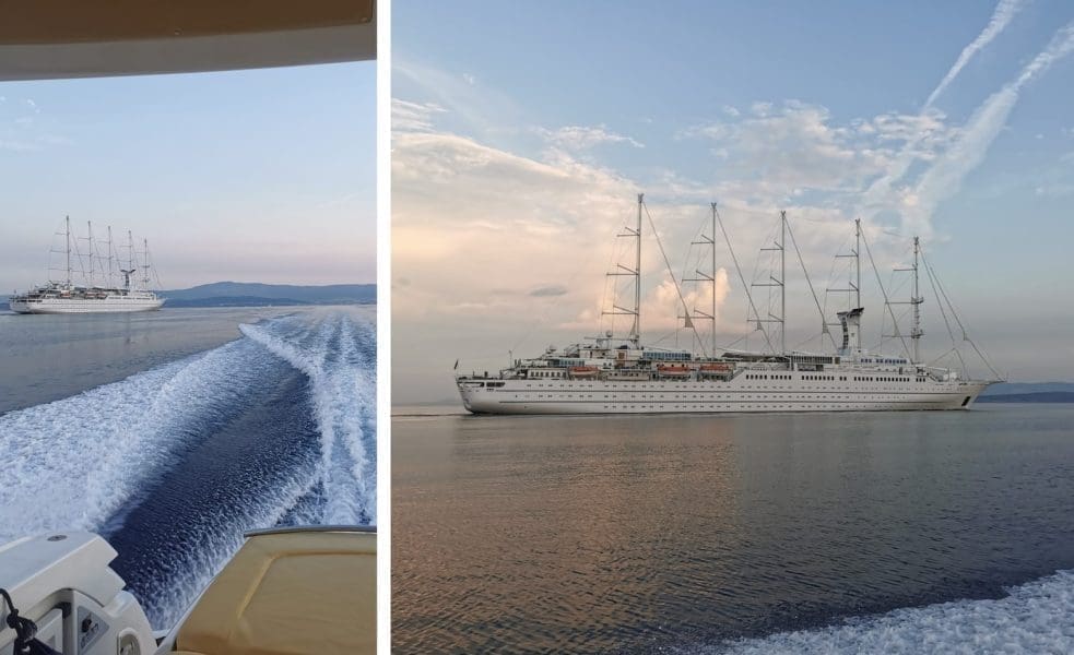 Kako smo doznali, riječ je o luksuznom kruzeru "Wind Surf", a isti često dolazi u grad podno Marjana. Jedan je od najvećih jedrenjaka na svijetu.