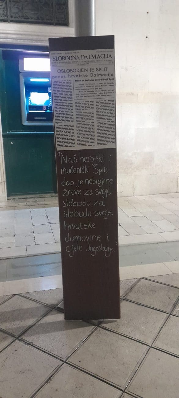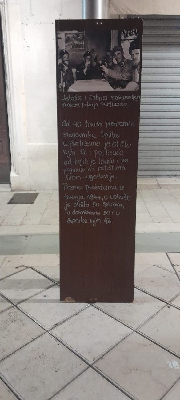 U centru Splita izloženi su edukativni radovi i arhivske fotografije kojima su mladi Splićani utvrdili povijesne činjenice te javnom intervencijom skrenuli pažnju na važnost suprotstavljanja mržnji prema manjinama i drugačijima, kao i na nedvosmisleno odbacivanje fašizma.