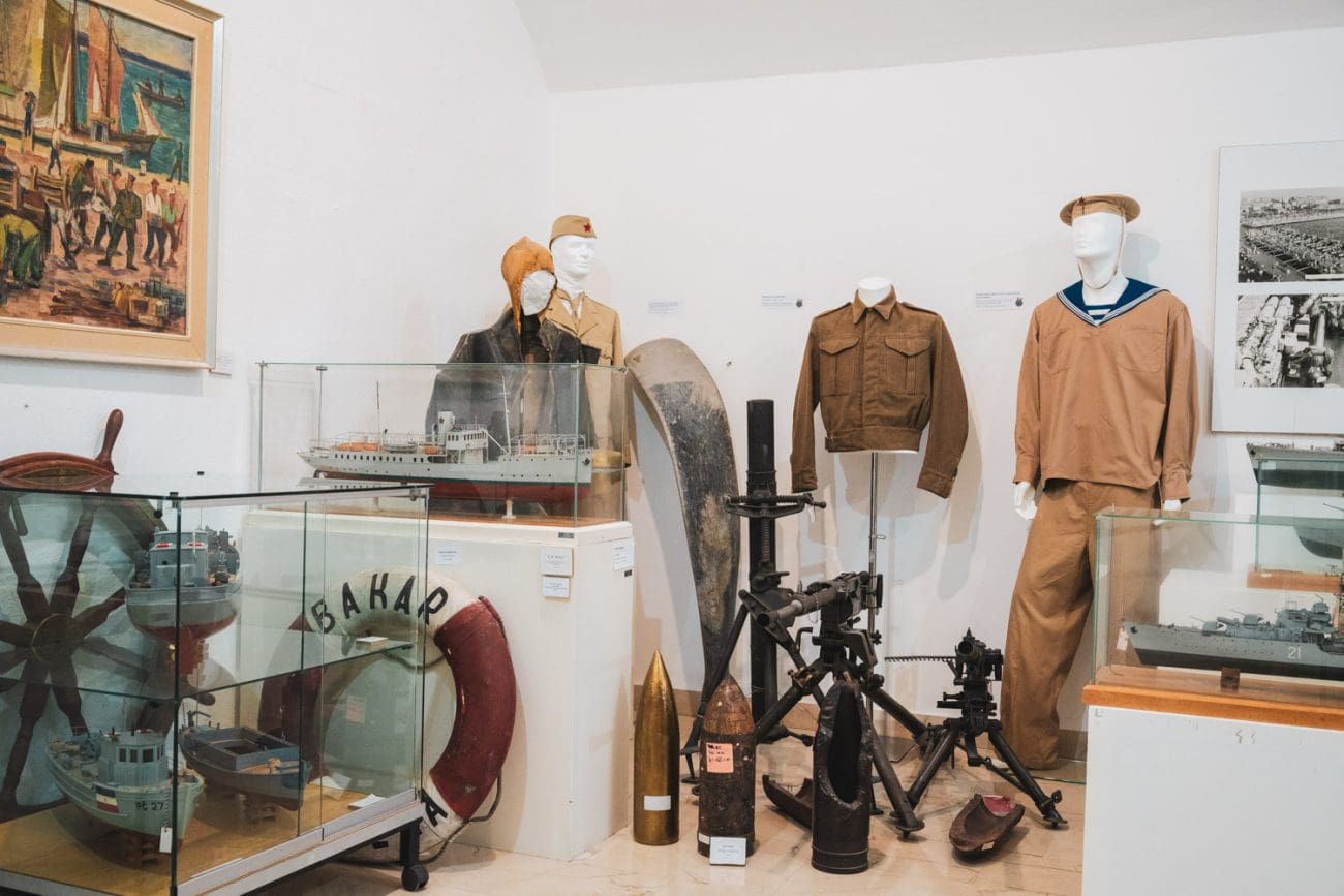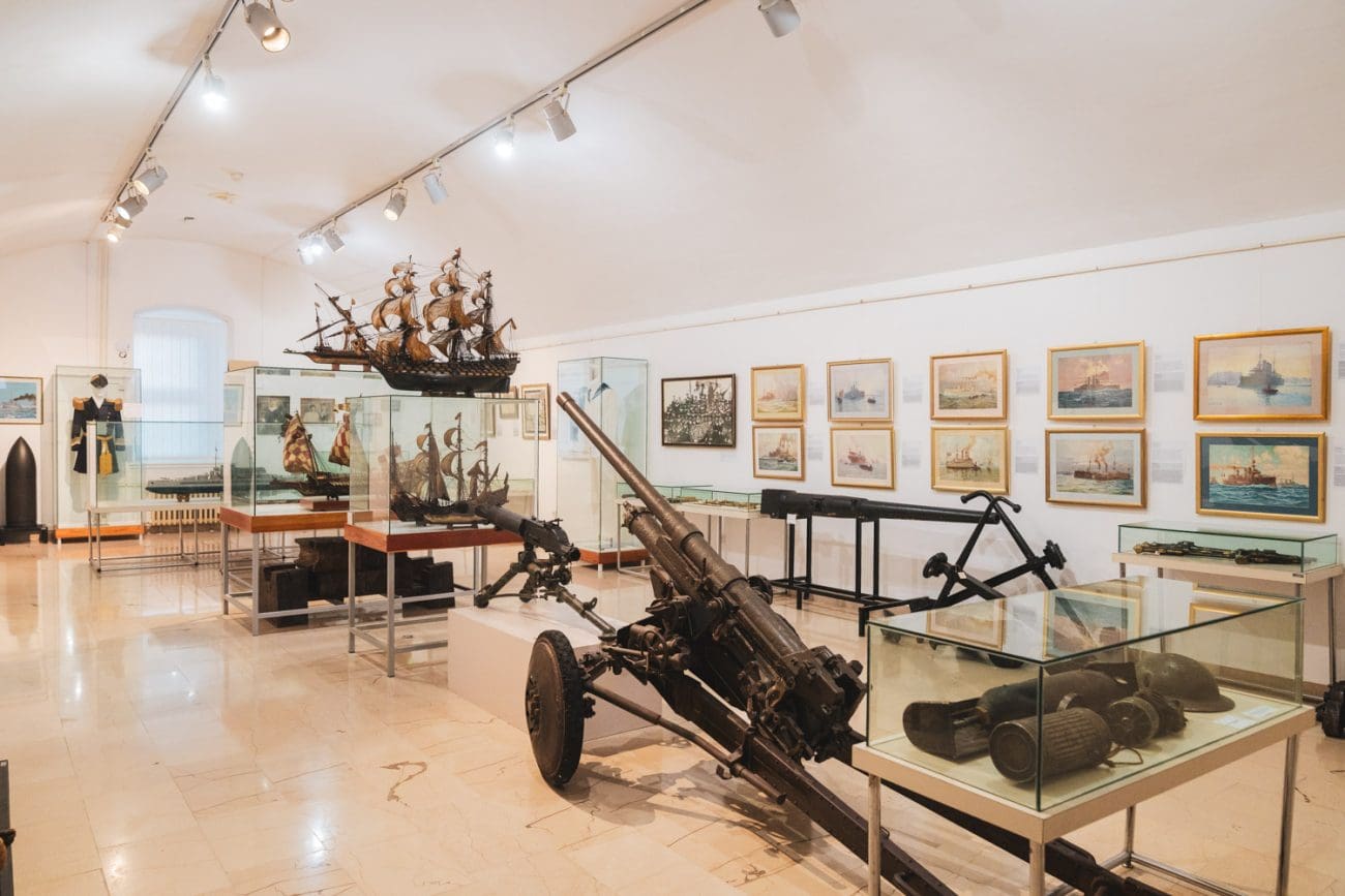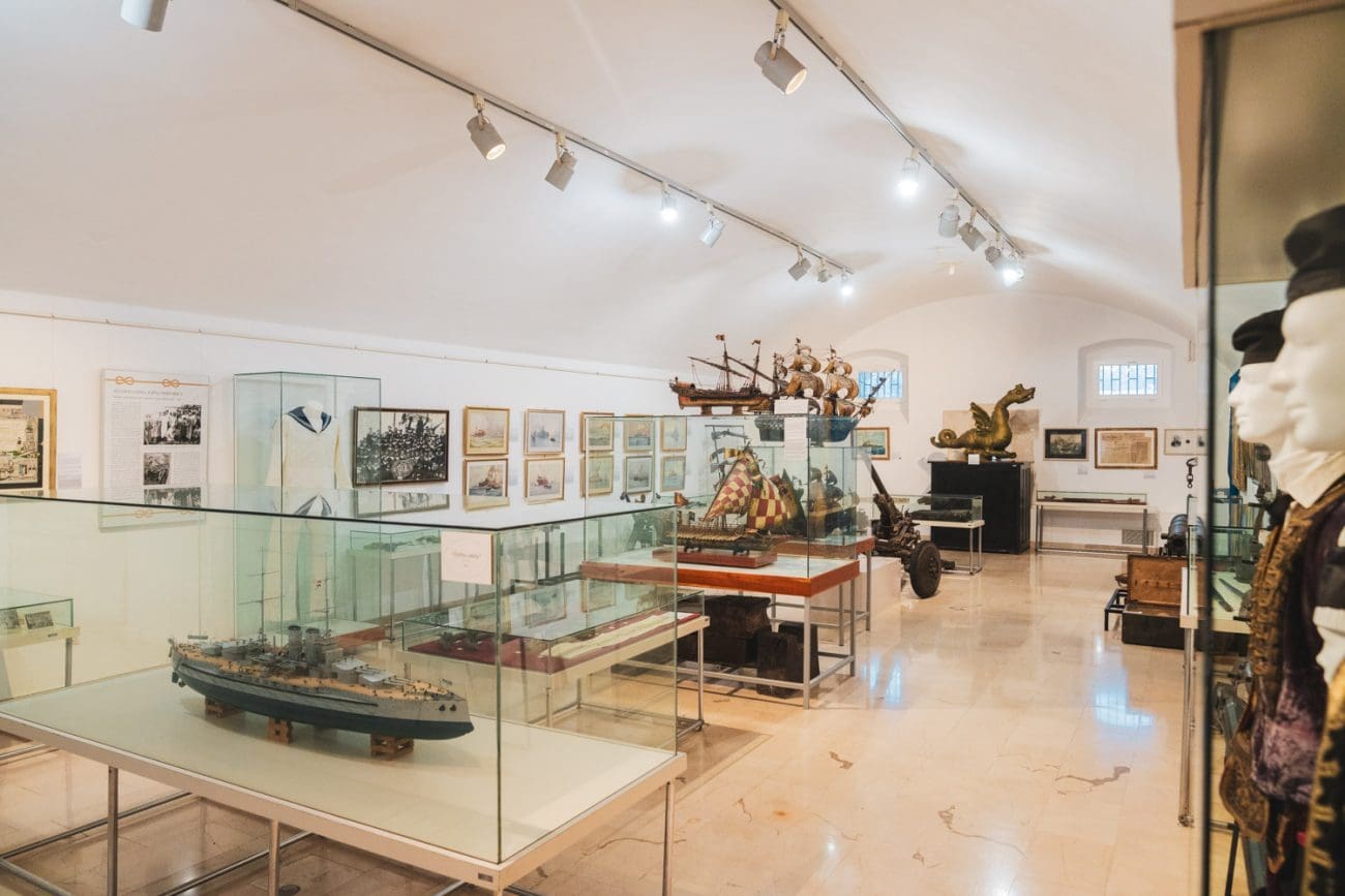 Posebno snažan segment postava posvećen je vojnopomorskoj povijesti Jadrana – od ilirskih i rimskih brodova, preko Lepantske bitke i Viškog boja, do Prvog i Drugog svjetskog rata te Domovinskog rata. Putovanje kroz muzej simbolično završava torpedom – izumom Ivana Lupisa, čiji je najstariji sačuvani primjerak iz 1866. godine upravo u Splitu.