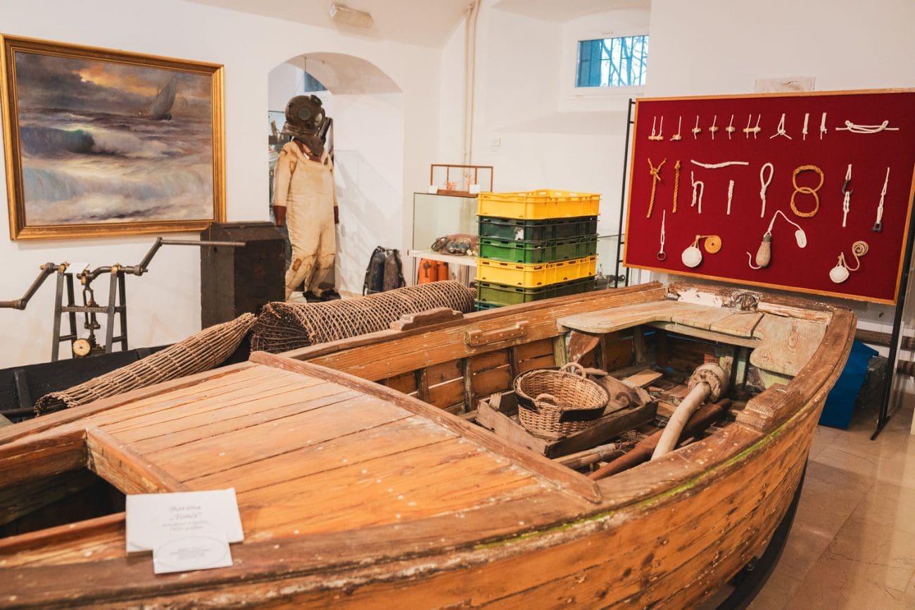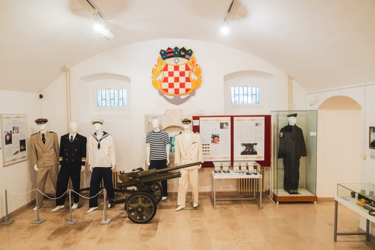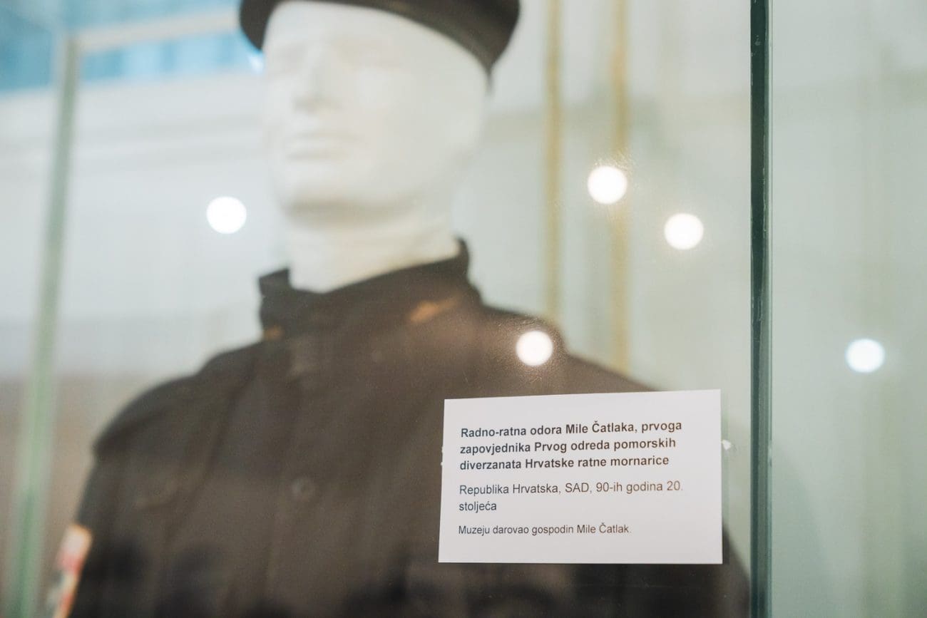 Među brojnim atraktivnim izlošcima ističe se grčki pitos – golema posuda za pohranu hrane iz antičkih vremena, slova koja su nekad krasila slavni brod Rex na liniji između Italije i Sjedinjenih Američkih Država, velika maketa prvog kruzera Kraljica Marija, kao i maketa hrvatskog broda koji je sudjelovao u glasovitoj bitci kod Lepanta. Posebno snažan dojam ostavlja i katapultirana pilotska sjedalica iz srušenog aviona iz Domovinskog rata – nijemi svjedok nedavne, ali teške povijesti.