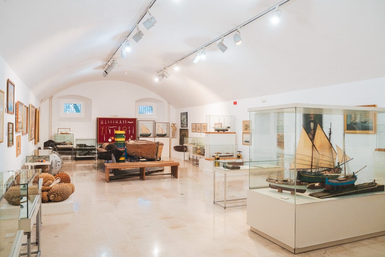 Stalni postav vodi vas kroz razvoj broda i plovidbe – od antičkih jedrenjaka i brodova na vesla, preko parobroda, do modernih motornih brodova. Antička sidra, amfore i pitosi, makete dubrovačkih i bokeljskih jedrenjaka, pulene s korčulanskih brodova, brodski dnevnici, navigacijski instrumenti, priče o ribarstvu, koraljarstvu i spužvarstvu – sve to čini mozaik života uz more.