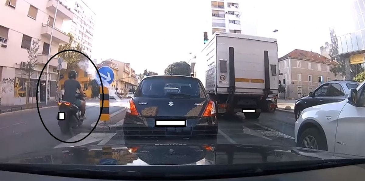 Jedan 'ludi' i pomalo nevjerojatni potez učinio je vozač mopeda na jednom od najopasnijih splitskih raskrižja - onom kod 'Kroma' u Ulici Domovinskog rata.