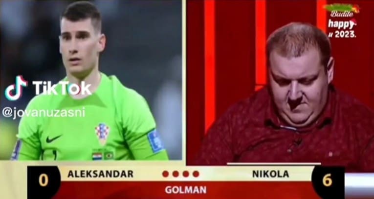 U trenutku kad se ispred njega pojavila fotografija Dominika Livakovića, natjecatelj je rekao: "Ovo je naš Srbin Livaković!".