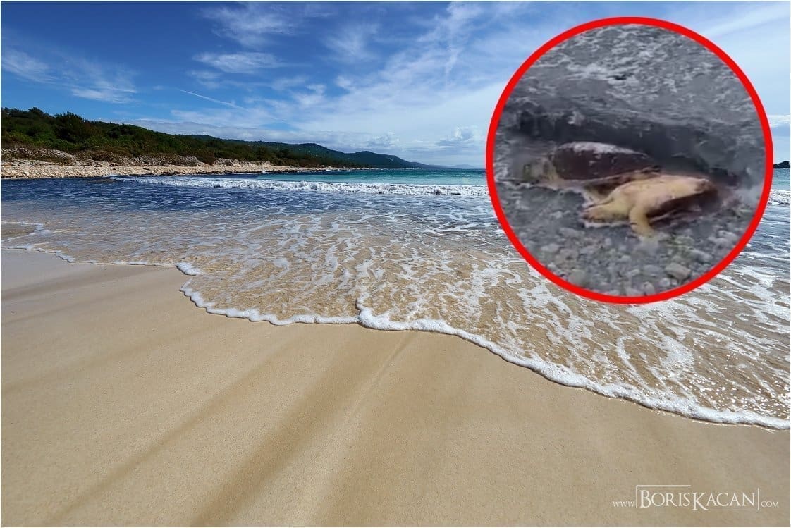 U Šibenskom zaljevu, uvala Malinica ispod zaseoka Guberine, kod šibenskog mosta, pronađena je uginula glavata želva.