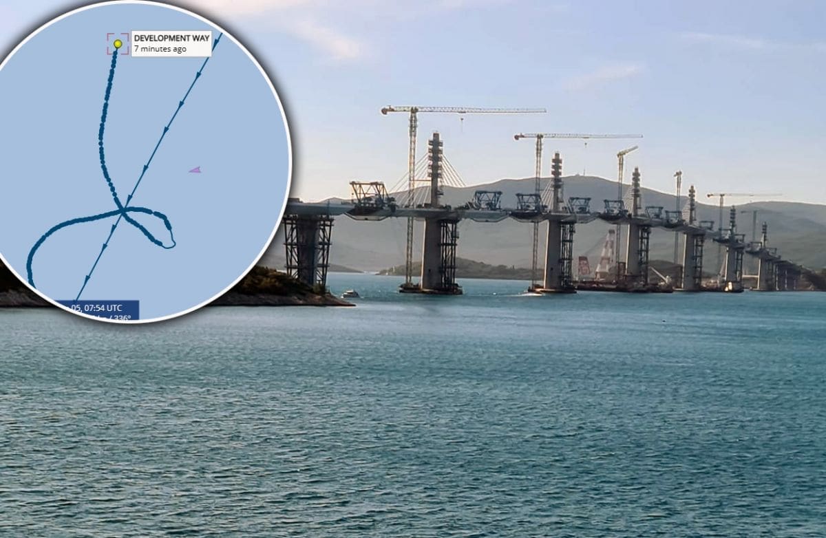 "Suglasno pozicijama brodova koje prikazuje "vesselfinder.com", kineski brod (pod panamskom zastavom) "Development Way" je od jučer u ozbiljnom kvaru, pa pluta u Otrantskim vratima. Brod prevozi (navodno) "posljednje" elemente za Pelješki most", napisao je Legaz na redakcijski mail.