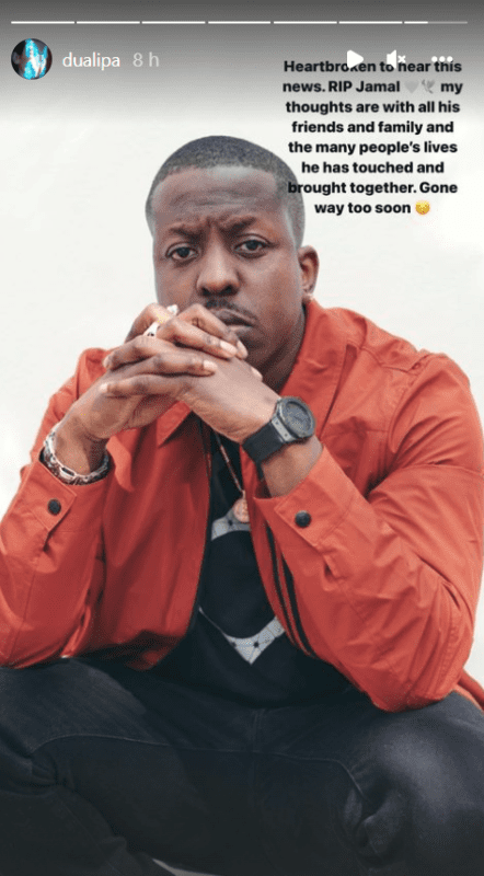 "Srce mi se slomilo kad sam čula ove tužne vijesti. RIP Jamal. Moje misli su s njegovim prijateljima, obitelji i ljudima čije živote je dotaknuo i spojio. Otišao je prerano", napisala je Dua Lipa.