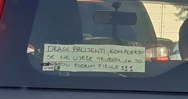 Na Facebook stranici "Prometne zgode i nezgode" dijeli se fotografija koja je nastala u Splitu. Na slici je vidljiva poruka koju je netko zalijepio na vjetrobransko staklo vozila.