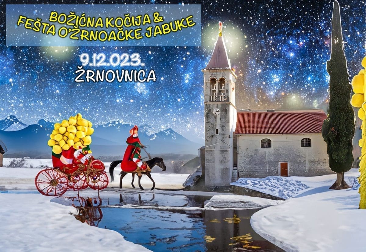 Večer počinje već tradicionalnom "Božićnom kočijom". Za ovu prigodu potpuno uređena i dekorirana kočija s pravom konjskom zapregom kružite će ulicama Žrnovnice, a u 17 sati stići će do svog konačnog odredišta - parkirališta ispred vatrogasnog doma u centru mjesta. Promet centrom mjesta će privremeno biti obustavljen na sat vremena, a Djed i Baka Božićnjak s vilenjacima dijelit će djeci darove ako to dozvoli Grinch koji je najavio svoj dolazak!