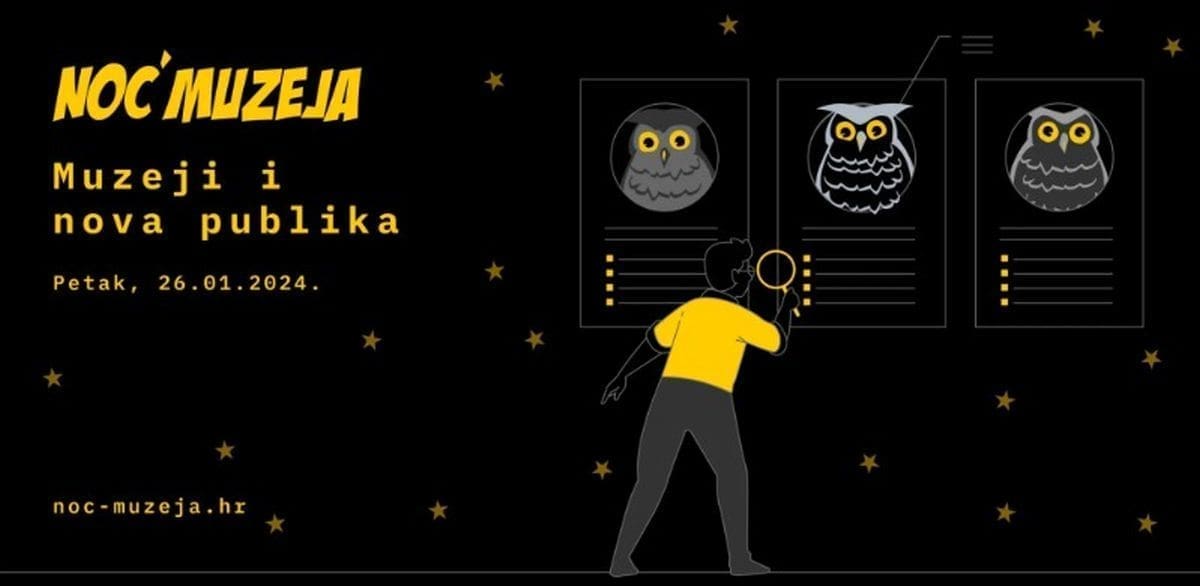 Hrvatsko muzejsko društvo organizira devetnaesti put manifestaciju Noć muzeja, koja će se održati u petak 26. siječnja 2024. godine, u suradnji s brojnim hrvatskim muzejima i drugim baštinskim, znanstvenim i obrazovnim institucijama.