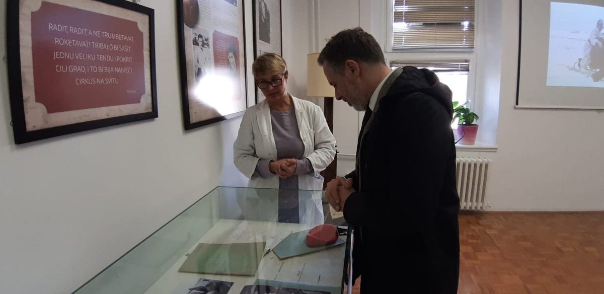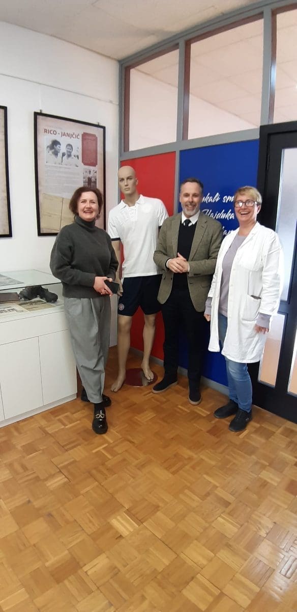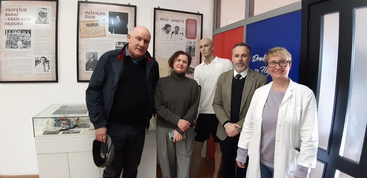 Predsjednik Hajduka Lukša Jakobušić i Boro Primorac, voditelj nogometne akademije Hajduka, danas poslijepodne obišli su izložbu Velo Misto u Državnom arhivu u Tvrđavi Gripe. Domaćini su im bili ravnateljica Bruna Horović-Vuković i Vendi Ganza.