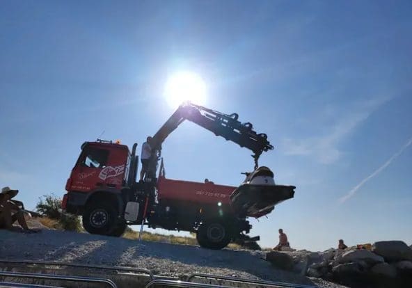 Kupače na Žnjanu u nedjelju ujutro iznenadio je prizor kamiona koji je došao na gradsku plažu kako bi spustio jet ski u more.