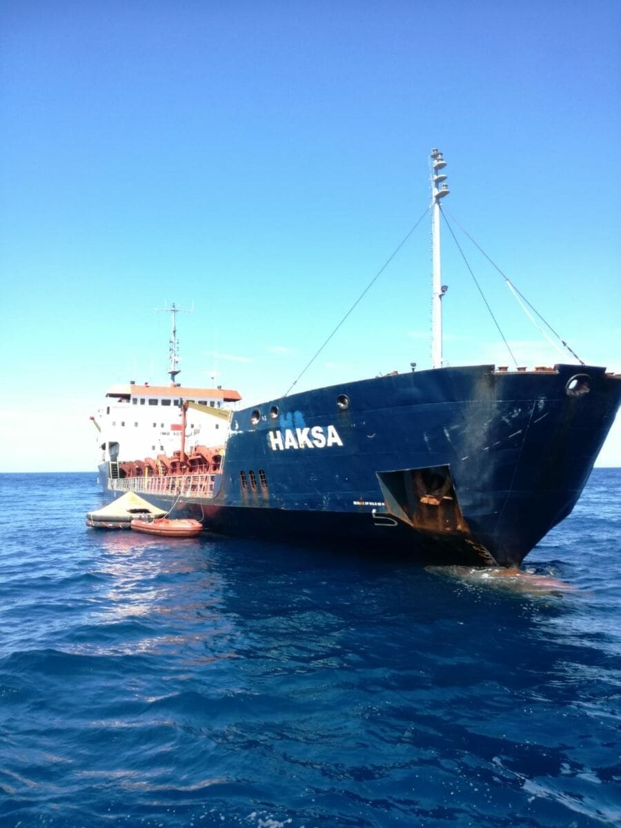 Ronilački tim angažiran u koordinaciji MRCC Rijeka i LK Split izvršili su u nedjelju popodne pregled trupa Turskog motornog teretnog broda 'Haksa' te su ustanovili oštećenje trupa u stražnjem desnom trupnom dijelu, ispod razine mora u vidu rupe od oko 20 cm2 (između skladišta broj 2 i strojarnice). Oštećenje je privremeno sanirano aluminijskom pločom koja je podmorskim zahvatom zalijepljena dvokomponentnim ljepilom te je nakon saniranja i provjere razine mora u strojarnici utvrđeno da količina zaprimljenog mora u potpalublju ne raste.