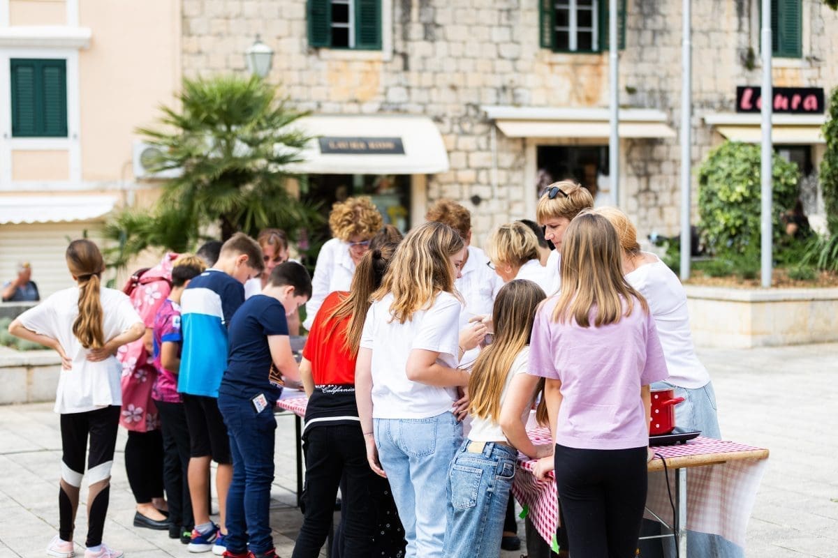 URA OD TORTE. Posebno atraktivan dio manifestacije nastupio je u 17h, kada se Kačićevim trgom krenuo širiti miris badema protkan nijansama amaretta i agruma, a pred našim očima pojavile su se raskošne ljepotice urešene pravilnim rombovima – makarana torte! Njih su spravile vrsne makarske domaćice, učenici Srednje strukovne škole u Makarskoj i zaljubljenici u slastice, pa posao njihova ocjenjivanja, koji je pored našeg Pažanina pripao i pravim kulinarskim meštrovicama – Tei Mamut i čuvarici biokovskih jela, Vedrani Veli Puharić, nije bio nimalo lagan. Laskavu pobjedu (kao da je lako nadmašiti vješte Makaranke!) je odnio Dragan Puharić, a koliko su samo umješne u kužini, doznali smo i tijekom radionice izrade makarskih makaruna, u kojoj su rukave zasukale makarske umirovljenice, ali i najmlađi - učenici Osnovne škole Stjepana Ivičevića iz Makarske.
