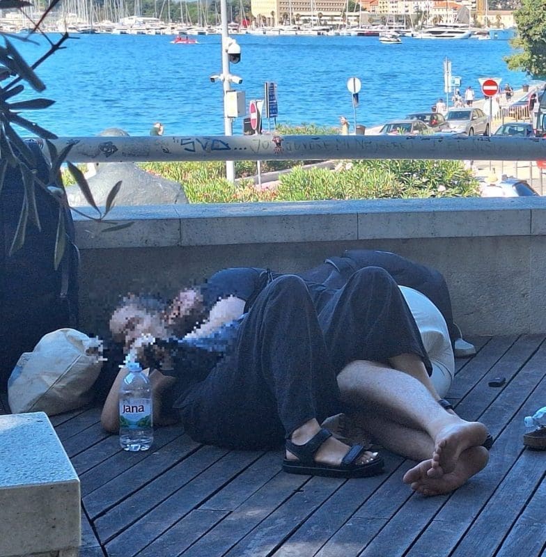 Navikli smo već na svakakve scene u Splitu za vrijeme turističke sezone. Iako slobodnih apartmana ima, redovito se mlade turiste može vidjeti kako spavaju gdje stignu - na livadi, na betonu pa čak i na kontejnerima.