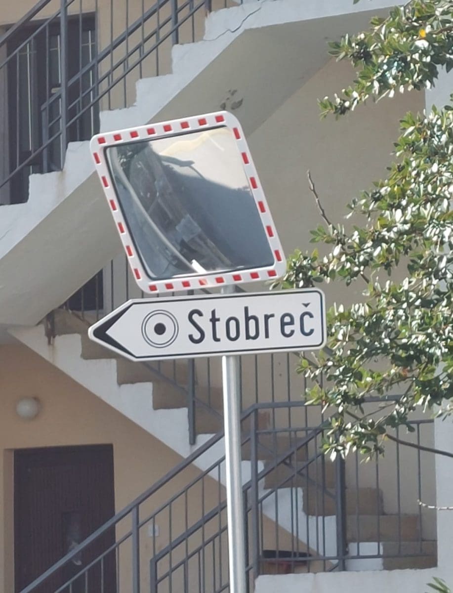 Ogledalo u Stepinčevoj ulici nasuprot Imotske ulice ponovno je pomjereno od udara vjetra i tražimo njegovo vraćanje u prvotno stanje jer vozači koji izlaze iz Imotske ulice u Stepinčevu nemaju preglednost. Prvi zahtjev poslan 21.11.2023.g. ali bez uspjeha. Drugi ponovljen 18.12.2023.g. i opet ništa. A onda prepušteni sebi sami popravljamo ogledalo. Druga situacija još luđa i gora. Kako je stobrečka riva u derutnom stanju i samo čeka da se netko prilikom njenog prolaska ozljedi tražili smo ako već nije moguća njena rekonstrukcija sukladno predanom projektu da se saniraju sve nastale rupe ni to nije moguće.