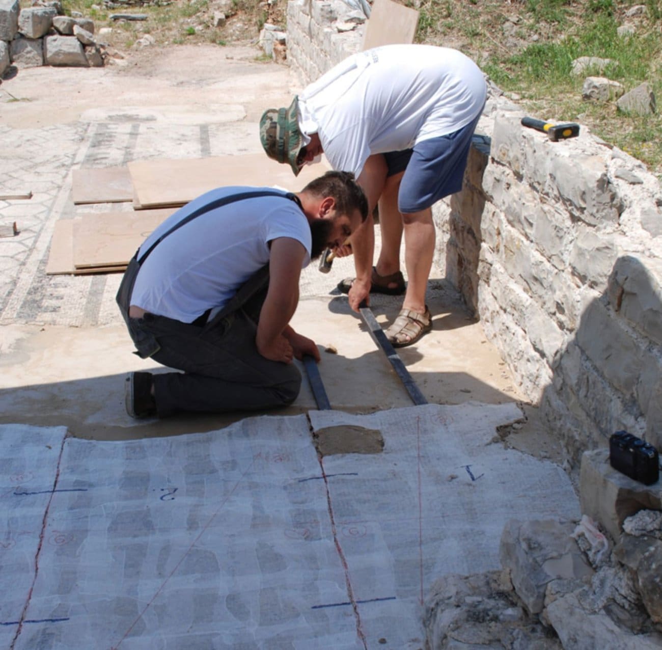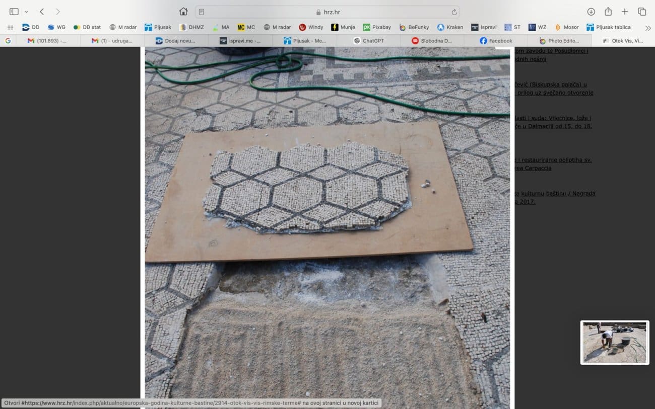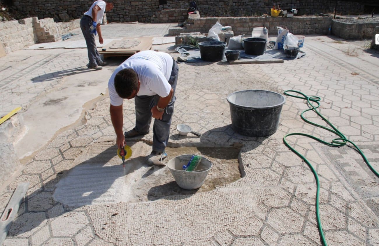Jednom otkrivena i oslobođena ljuski nagomilanih slojeva, arheološka nalazišta s vremenom postaju sve ranjivija i podložnija erozijskim procesima koji mogu znatno umanjiti njihovu izvornu matricu. Mozaici na viškim antičkim termama od 2000. godine kontinuirano konzervatorsko-restauratorski obrađuju djelatnici Hrvatskog restauratorskog zavoda, pokušavajući izvorne materijale zaštititi i njegovati kako bi posljedice izloženosti mijenama i razornim učincima štetnih procesa bile što manje. Osim standardnih konzervatorsko-restauratorskih postupaka primjenjivani su i složeniji zahvati podizanja dijelova mozaika i vraćanja na izvorne podloge. Koncepcija očuvanja i zaštite viških mozaika pridonosi njihovu dostojnom predstavljanju kao najreprezentativnijem dijelu kulturne baštine. (Hrvatski restauratorski zavod)