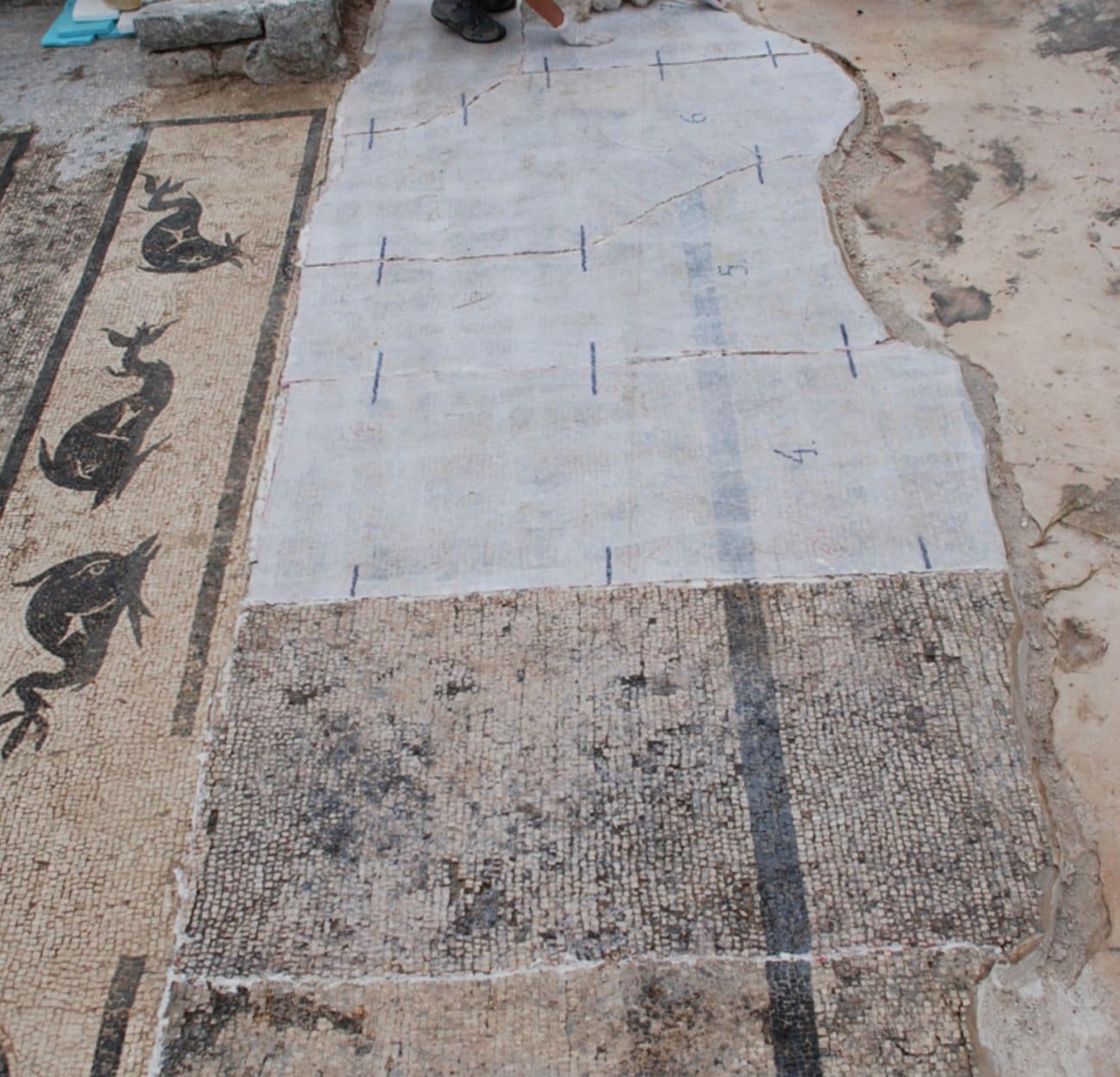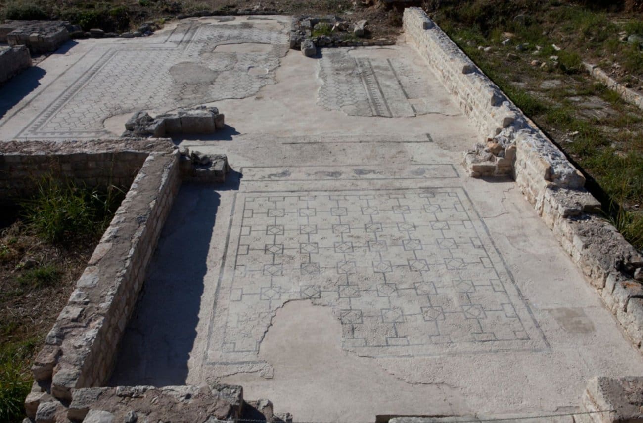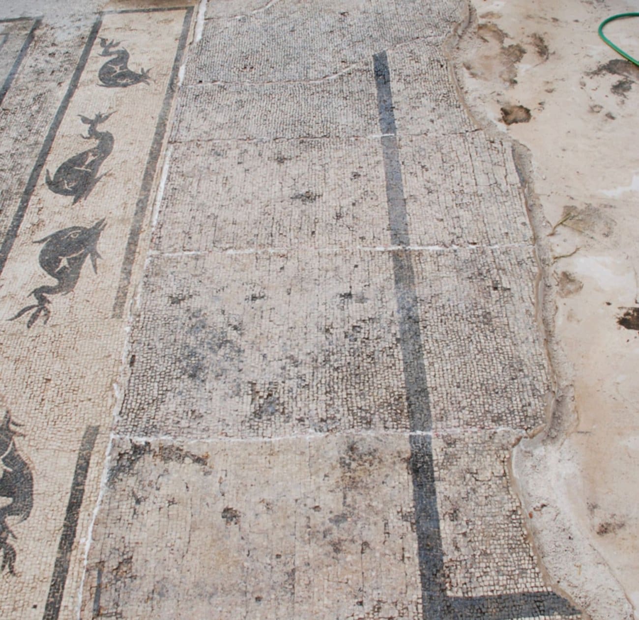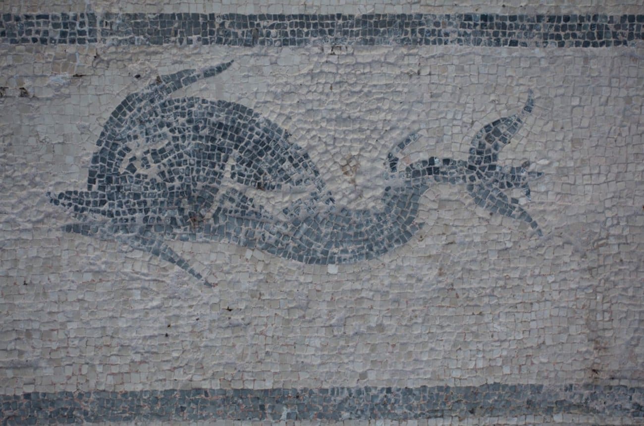 Podni mozaički tapeti urešavali su većinu prostorija termalnog sklopa, odajući dominantnu rimsku strogost u jednostavnosti geometrijskih motiva kao univerzalnih formi koji se mogu pronaći u ostatku rimskog imperija na Sredozemlju. Prikaz dupina na jednom od mozaičkih tapeta dokaz je visokih standarda u dizajnerskim rješenjima unutarnjeg prostora termi, koji pridonosi kompozicijskoj dinamici unutar prevladavajućih geometrijskih motiva.