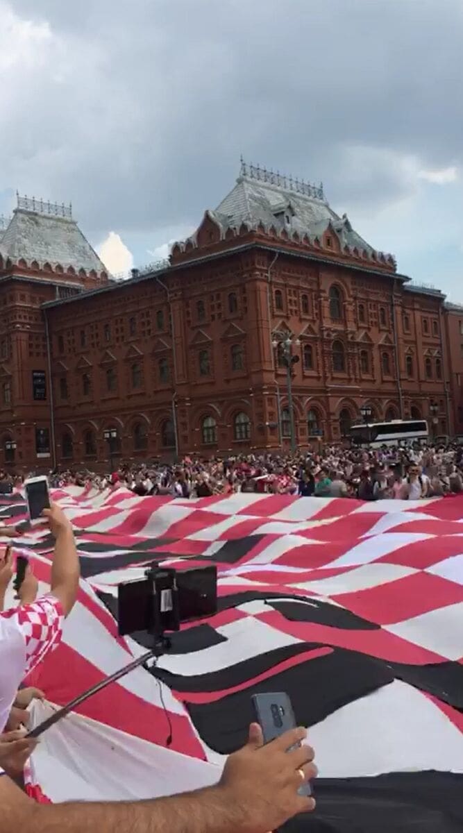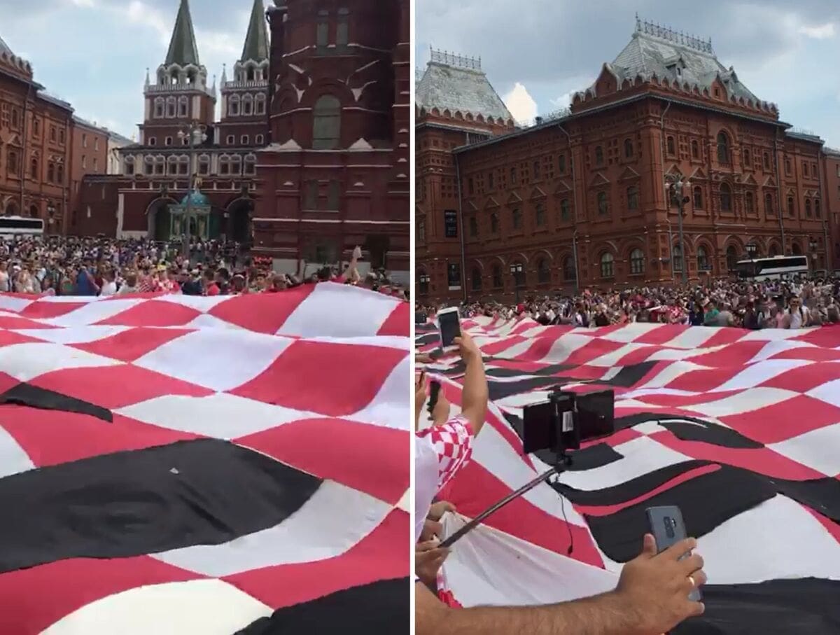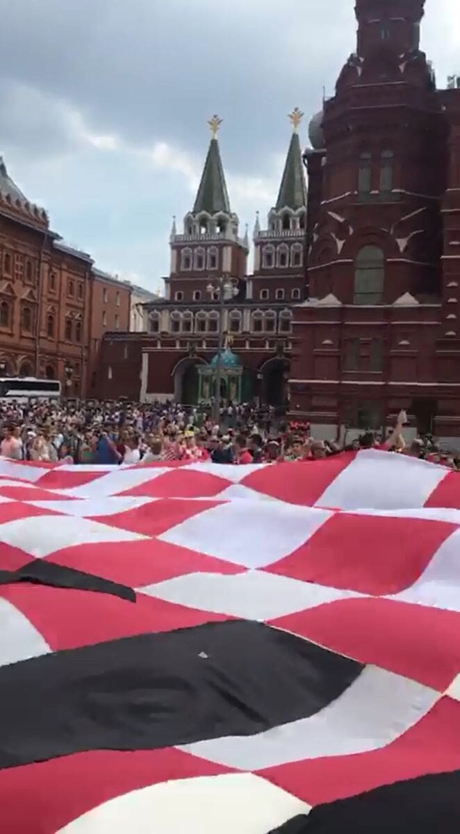 U popodnevnim satima hrvatski su navijači tik uz Crveni trg u Moskvi pjevali hrvatske navijačke i domoljubne pjesme, a razvili su i ogromnu zastavu s motivom hrvatskog grba.