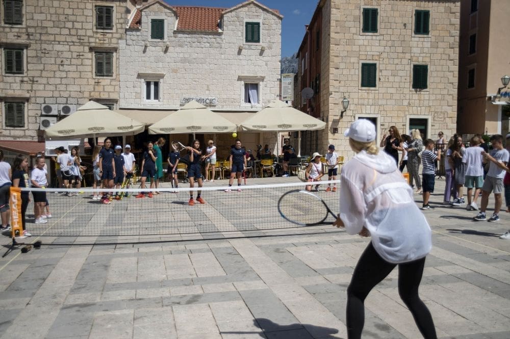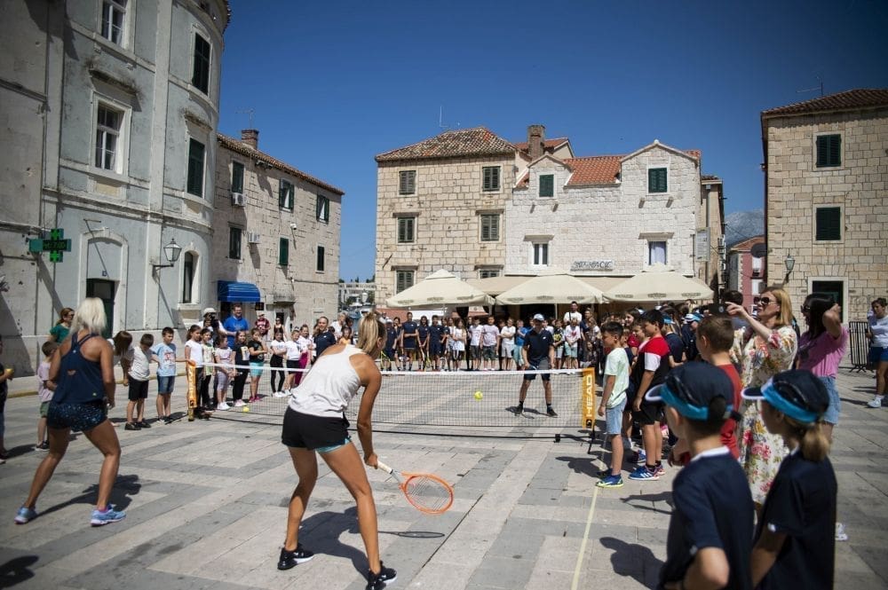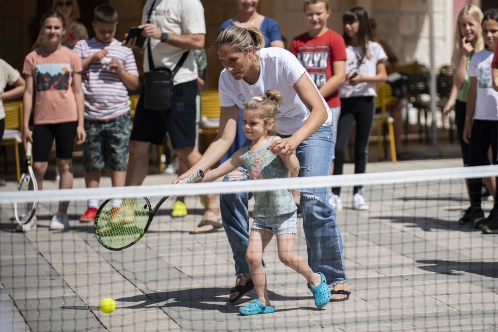 Tri, dva, jedan... - odbrojavala je u iščekivanju igračica jedna školarka, dok su njezini prijatelji iz razreda odradili utrku na dvadesetak metara u obližnjoj uličici, u hladu, skriveni od sunca koje se razlilo po trgu. Sjajan početak Kid's daya u sklopu WTA Makarska Opena.