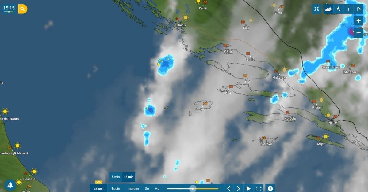 Inače, grmljavinski oblaci u popodnevnim satima stvorili su se na moru srednjeg Jadrana. Iako po prognozama u Dalmaciji ne bi trebalo biti nevremena, u vrijeme pisanja teksta neverin se nalazio na moru u neposrednoj blizini Primoštena.