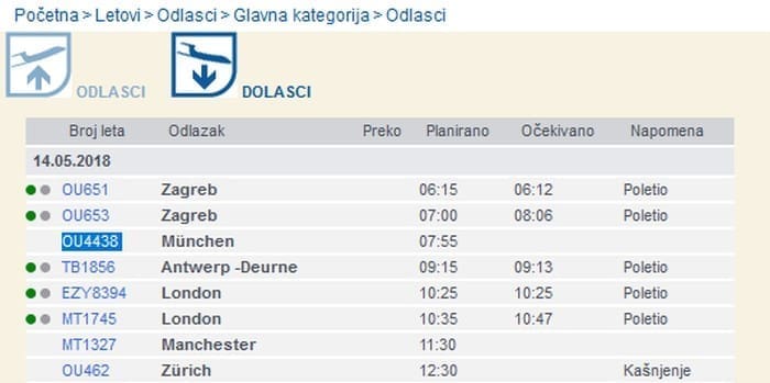 Da je let zaista otkazan može se vidjeti na samoj web stranici zračne luke: