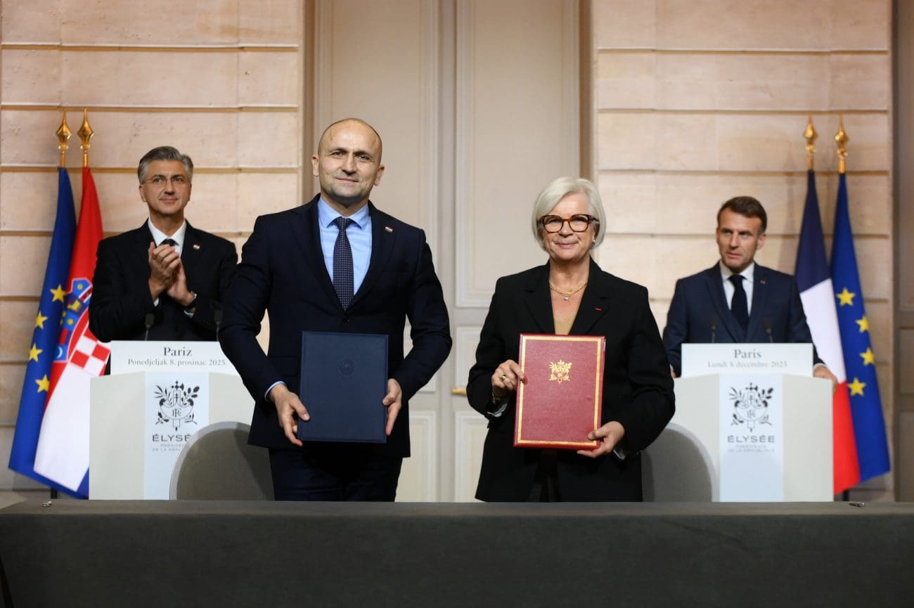 Premijer Andrej Plenković sastao se večeras s francuskim predsjednikom Emmanuelom Macronom, na čiji je poziv boravio u dvodnevnom službenom posjetu Parizu. Nakon sastanka potpisani su važni dokumenti: Akcijski plan za provedbu Strateškog partnerstva Hrvatske i Francuske, Ugovor o nabavi samohodnih haubica Caesar MK2 te Pismo namjere o povećanju sposobnosti borbenih aviona Rafale. Akcijski plan za razdoblje 2026. – 2028. potpisali su ministri vanjskih poslova Gordan Grlić Radman i Benjamin Haddad, dok su dokumente iz obrambenog paketa potpisali potpredsjednik Vlade i ministar obrane Ivan Anušić te francuska ministrica oružanih snaga Catherine Vautrin. Macron je istaknuo da novi plan definira dodatna područja produbljene suradnje te predstavlja važan korak u jačanju odnosa dviju zemalja.