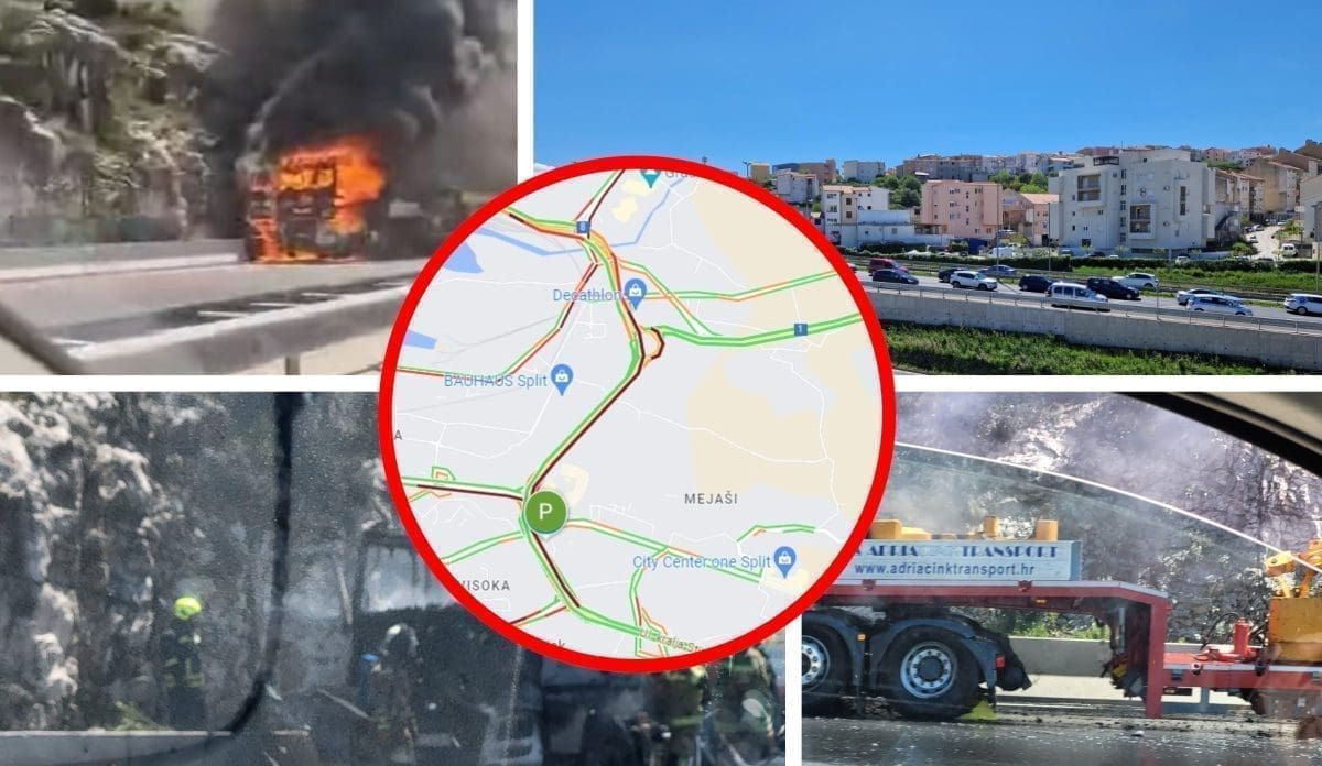 CESTA JE ZATVORENA ZA PROMET Na brzoj cesti Solin-Klis planuo kamion