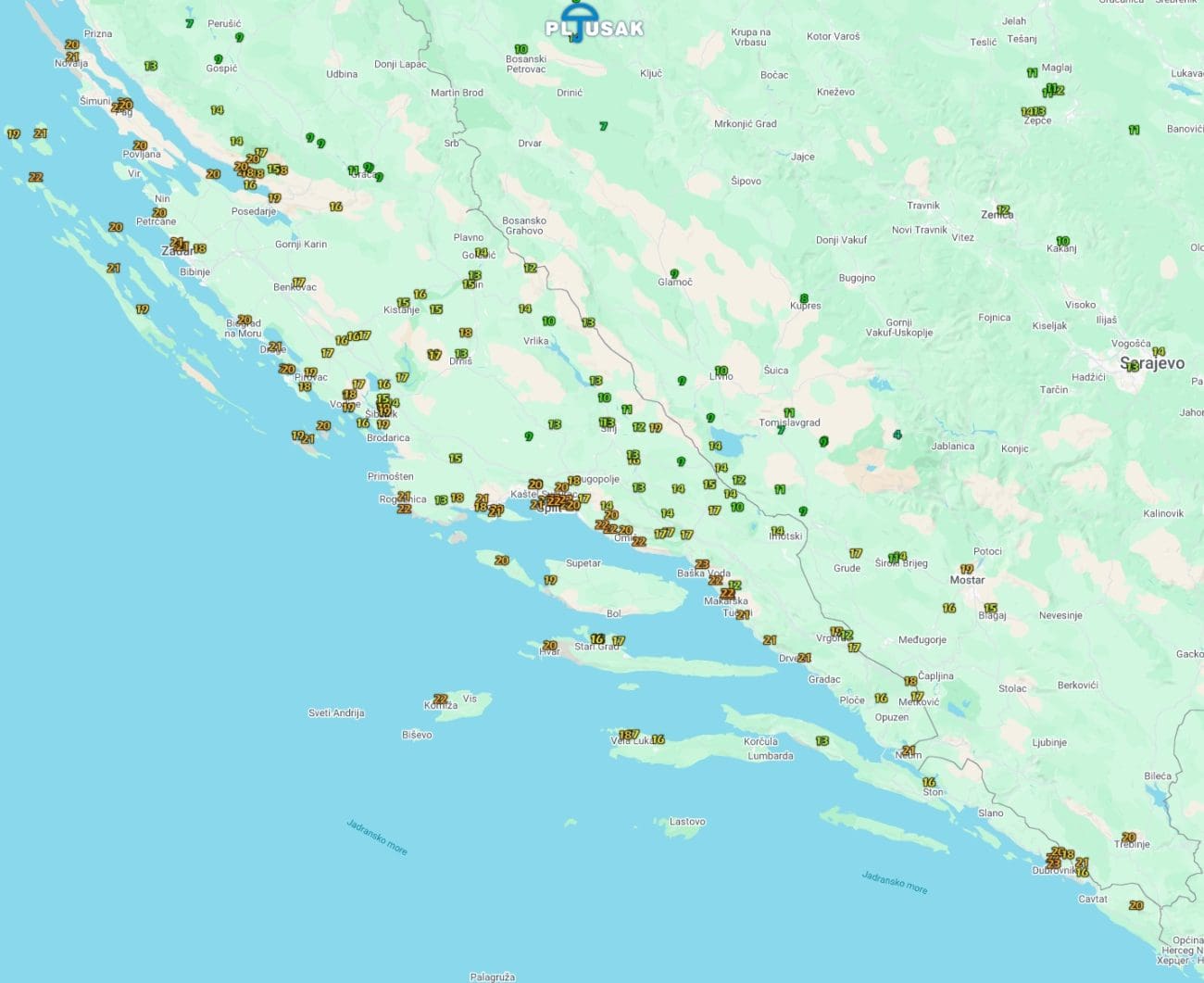 Srijeda je donijela vrlo niske minimalne temperature zraka za dio godine. Nekoliko mjernih postaja u Dalmaciji jutros su zabilježile jednoznamenkaste vrijednosti poput Niskog i Donje Tijarice. Čak su i na srednjodalmatinskim otocima velikim dijelom bile nešto ispod 20°C.