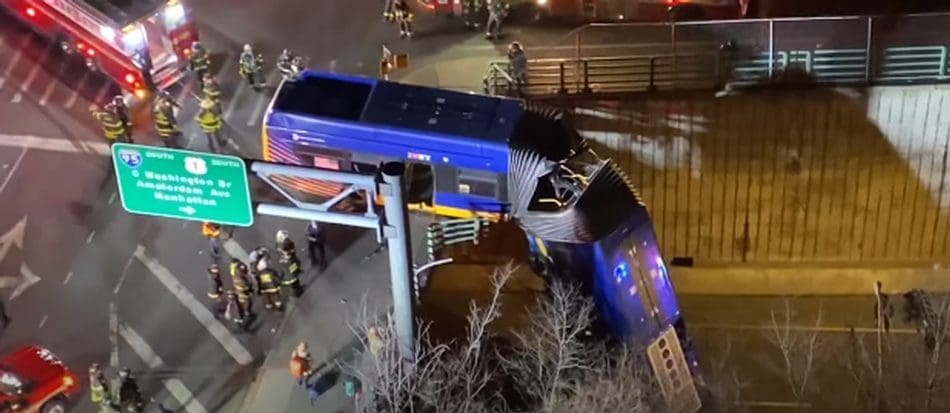 Najmanje sedam ljudi, uključujući vozača autobusa, ozlijeđeno je nakon što je ovog četvrtka autobus sletio s nadvožnjaka na području New Yorka, prenosi CNN.