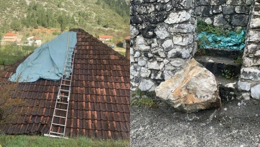 Prve fotografije kuće u mjestu Kukavac pokazuju oštećenja nastala na za vrijeme potresa, ali i jedan od nekoliko komada stijene koji su se obrušili sinoć na dom obitelji Sefo.