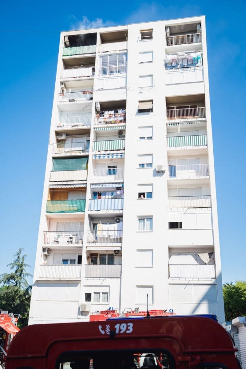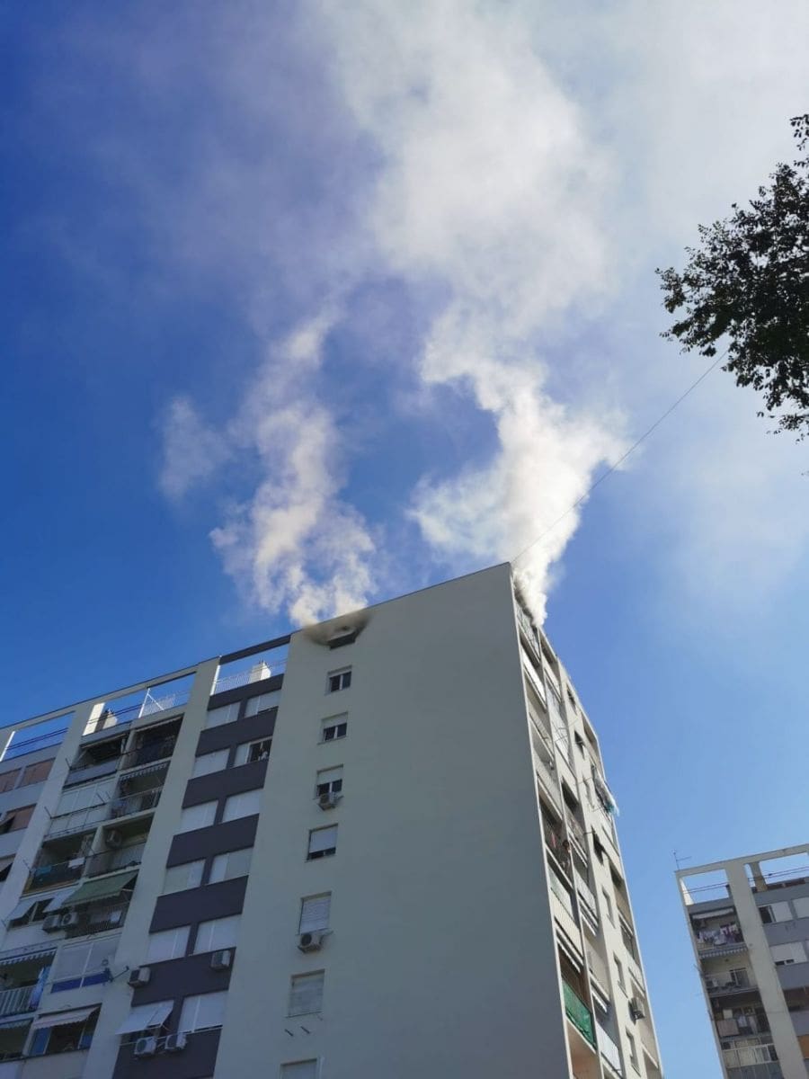 "U 09:36 sati, došla je dojava o požaru stana na adresi Požeška 14/9 kat. U stanu 1 osoba spašena i evakuirana iz stana te zbrinuta od strane HMP Split.