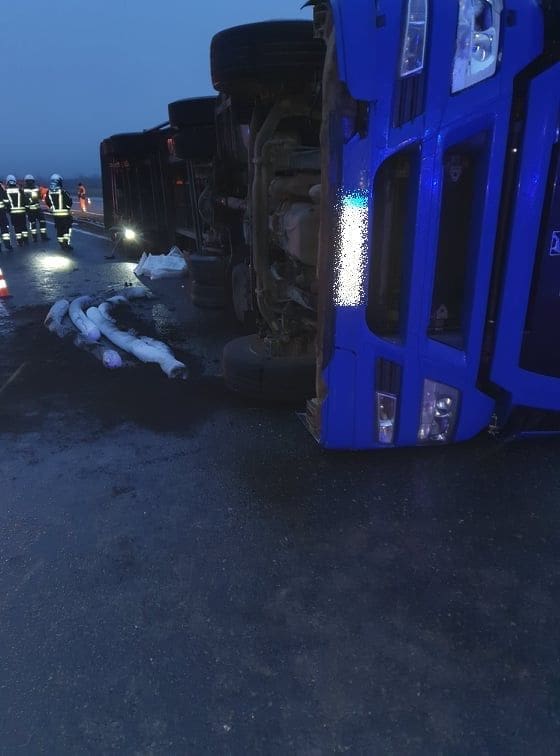 Policijski službenici Policijske uprave brodsko-posavske zaprimili su dojavu noćas u 3.12 sati, otišli su na mjesto događaja i uvrdili da se prevrnulo teretno vozilo nacionalnih registracijskih oznaka Republike Srbije.