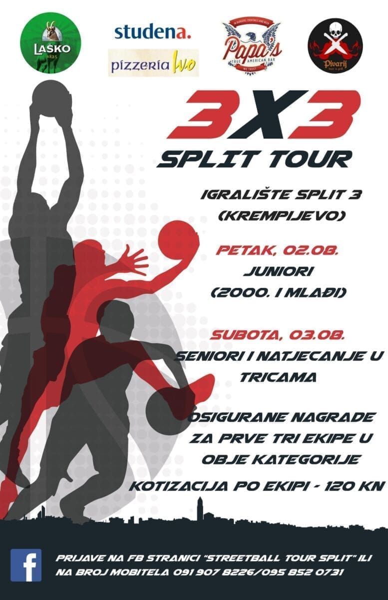 Prijaviti se možete na brojeve: 091 907 8226 i 095 852 0731 ili na Facebook stranici "Streetball Tour Split".