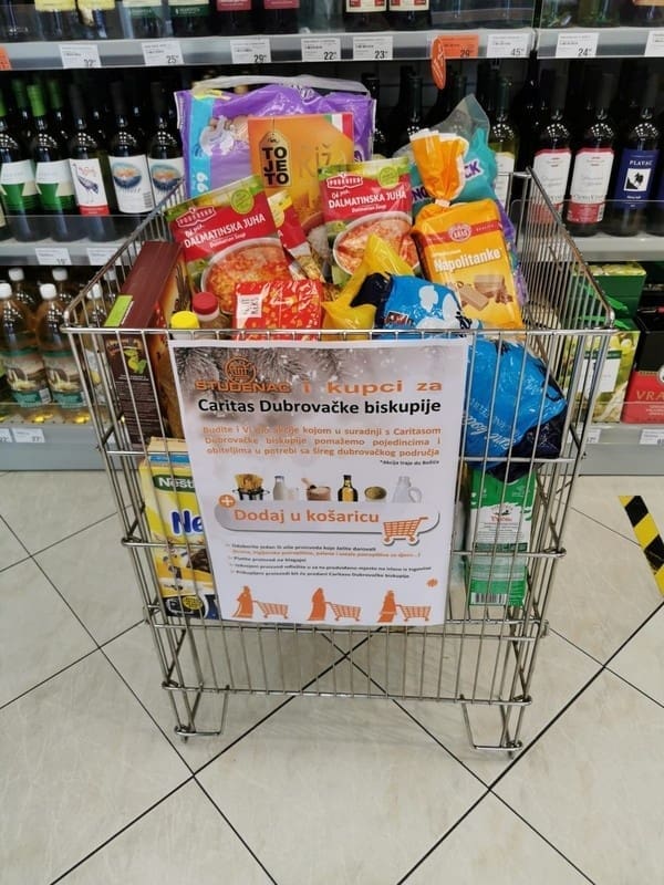 Važna je humanitarna suradnja i adventska akcija s Caritasom. U odabranim trgovinama Studenca od Splita do Dubrovnika postavljene su košare u kojima se do Božića prikupljaju donacije kupaca i djelatnika. Volonteri i djelatnici Caritasa zatim će donirane artikle prikupiti i kao obiteljske pakete podijeliti korisnicima pomoći.