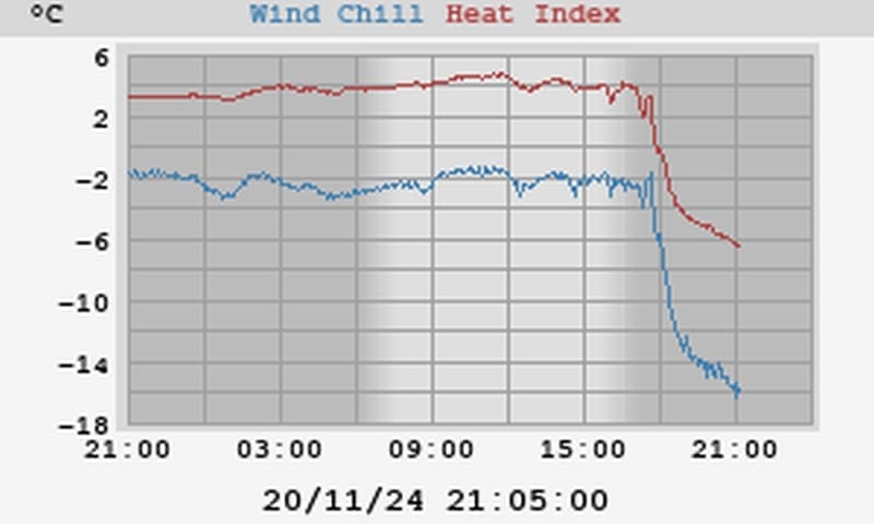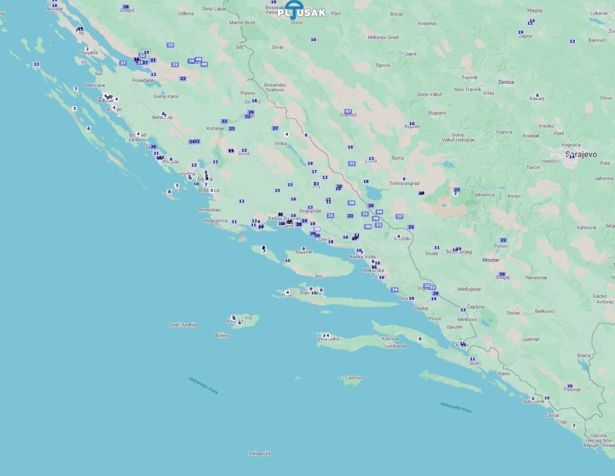 U večernji satima hladni zrak preplavio je veći dio Dalmacije. U 21 sat u srednjoj i sjevernoj Dalmaciji temperatura zraka u većinom ispod 10°C. Fronta u vrijeme pisanja članka još samo nije stigla do Konavala gdje se mjeri visokih 16°C.