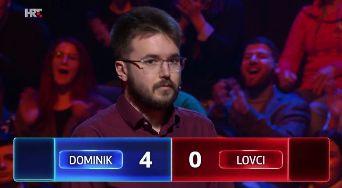Dominik nije znao da je bouquinist s UNESCO-va popisa naziv za prodavače knjiga uz rijeku Seinu, da je Fridrih Vilim III. uveo vojno odlikovanje željezni križ, da je Descartesov prvi traktat bio o glazbenoj teoriji i estetici te da je animacijski studio Ghibli osnovan u Tokiju prije 39 godina. Sabranom igrom Dominik je osvojio 10.000 eura, a na njegovom satu ostale su još četiri sekunde, piše HRT.