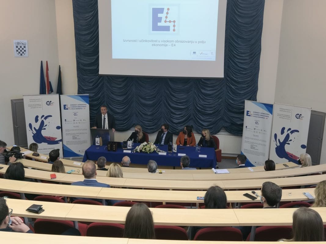 Završnom konferencijom održanom u petak 18. ožujka 2022. godine na Ekonomskom fakultetu u Splitu zaključen je projekt „Izvrsnost i učinkovitost u visokom obrazovanju u polju ekonomije – E4“ čiji je nositelj Ekonomski fakultet u Splitu, a partneri su: