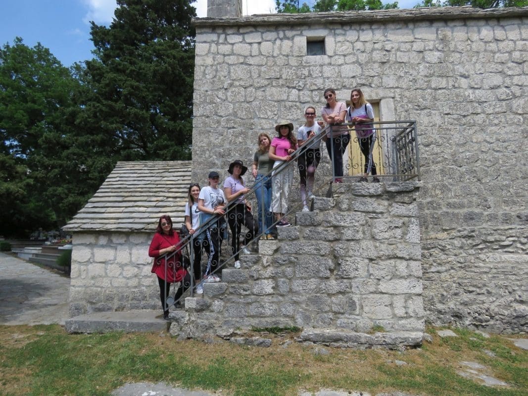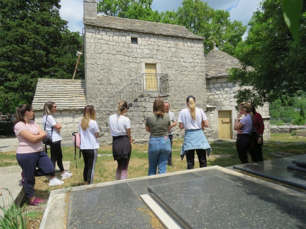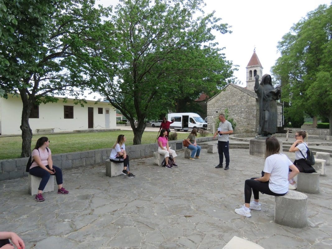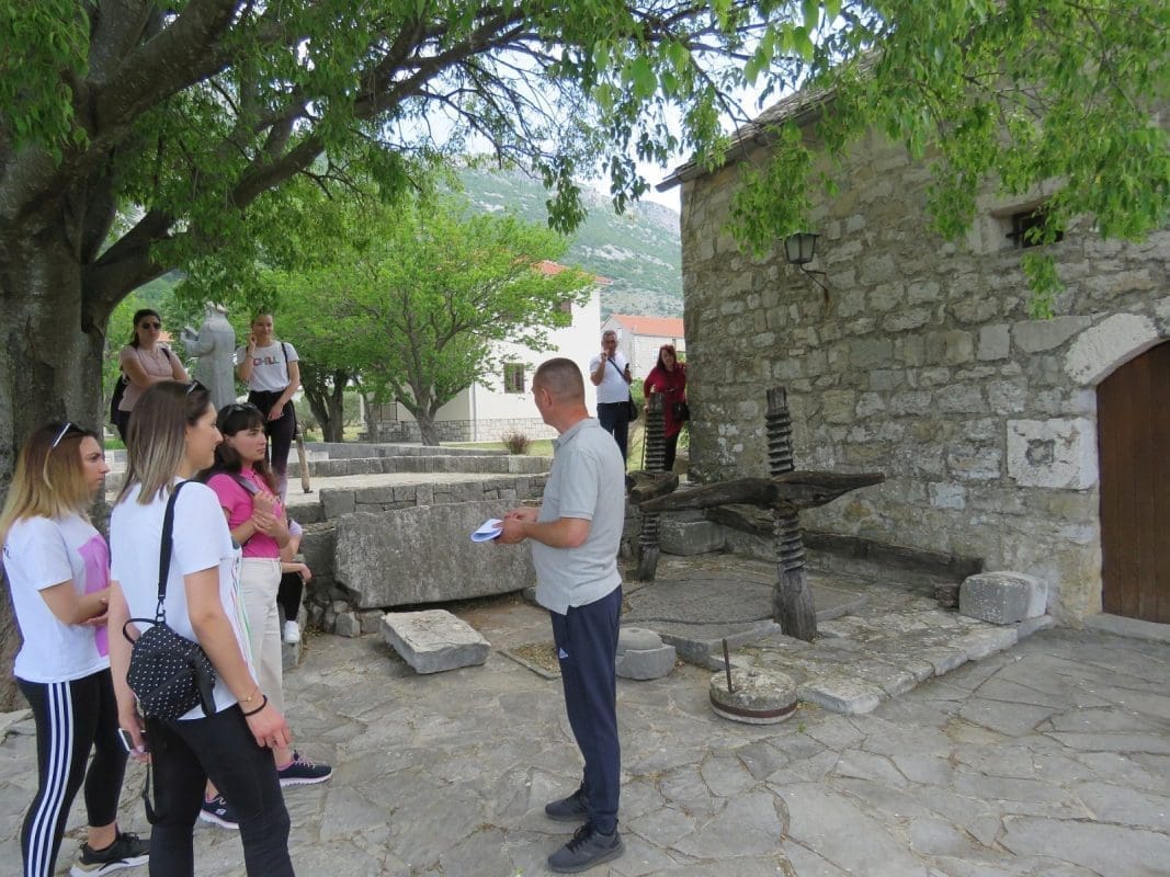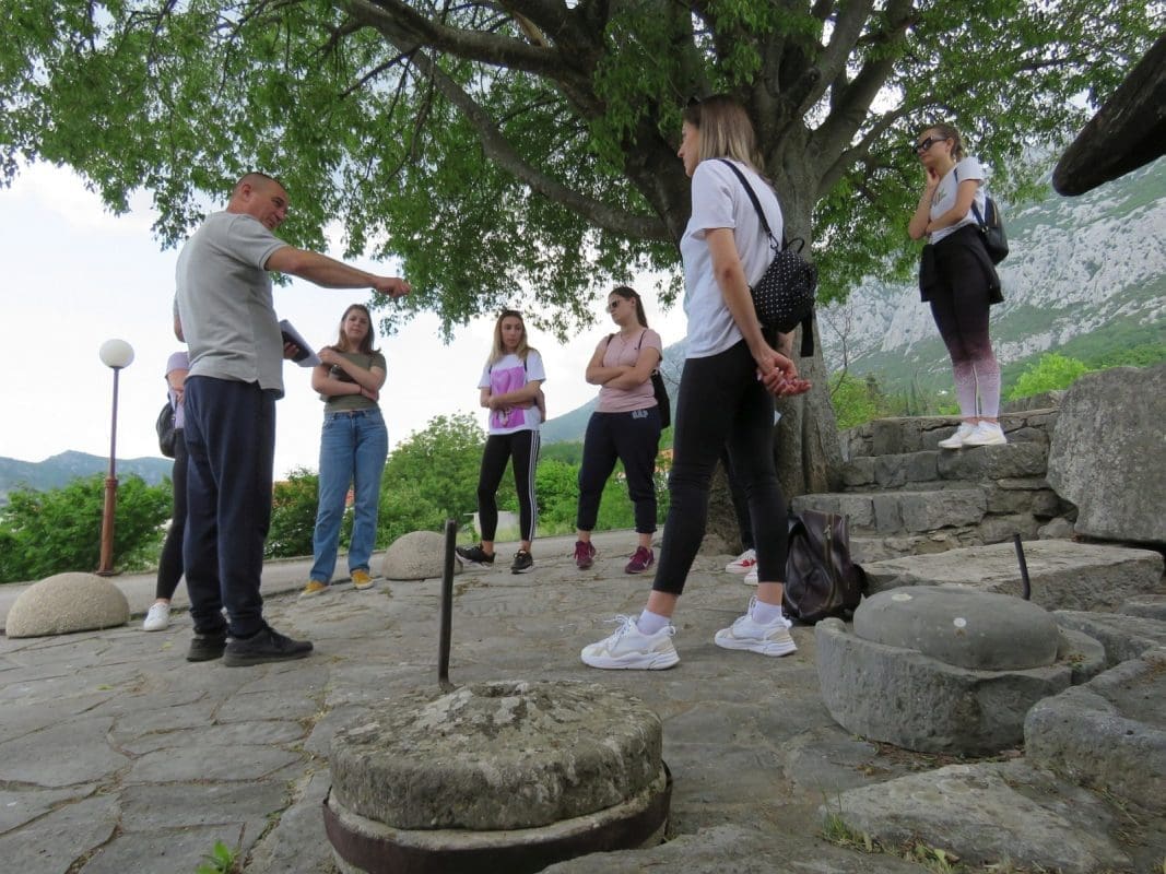 Terenska nastava je nastavljena posjetom crkvi Sv. Jure na Gracu, te crkvi Sv. Ciprijana u Gatima. Studenticama je u Gatima o povijesti Poljičke republike, poljičkom statutu, popima glagoljašima, kulturnom značaju sakralnih objekata i drugim osobitostima toga kraja rječito govorio prof. Ujević. Uslijedio je posjet crkvi Sv. Klementa, na mjesnom groblju u Gornjem Sitnom, podno zvjezdarnice.