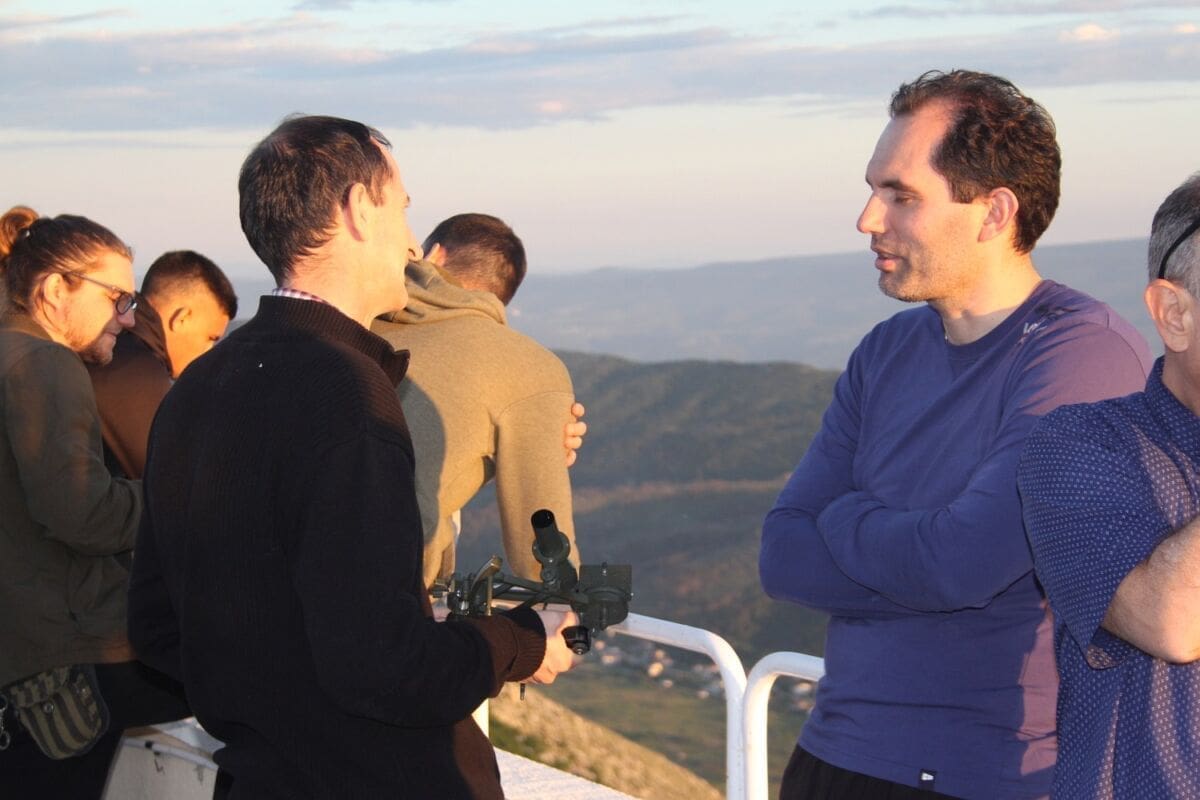 Suradnja Pomorskog fakulteta u Splitu i udruge Zvjezdano selo Mosor (ZSM), nastavljena je i devete godine za redom! Skupina od 37 studenata i tri profesora preddiplomskog studija pomorske nautike, posjetila je dana 22. svibnja zvjezdarnicu na vrhu Makirini. Posjet je ostvaren u sklopu kolegija astronomske navigacije, a studente je vodio prof. Zvonimir Lušić.