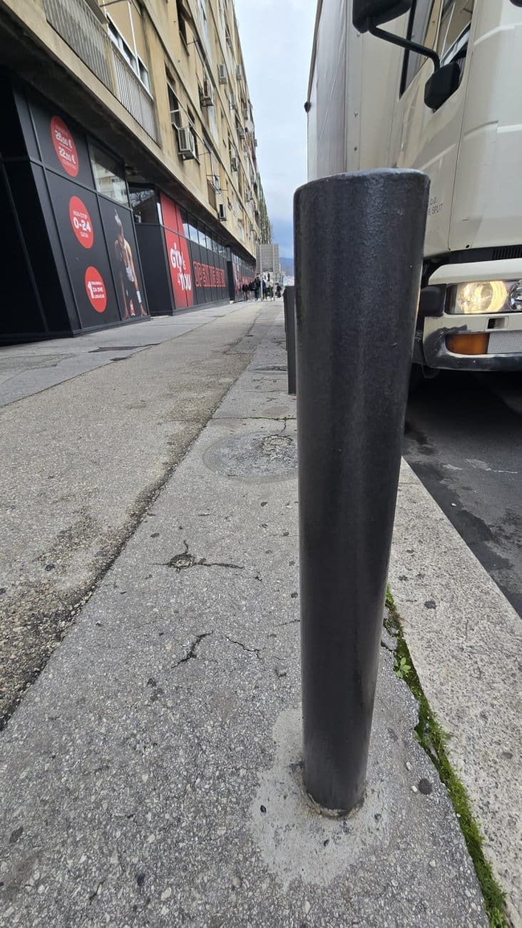 Na trotoaru kod "Muslimanke"osvanuli novi stupići koji onemogućavaju parkiranje. Nakon šta su prije koji tjedan nikli na početku Dubrovačke ulice, stupići su od danas osvanuli i duž Ulice Domovinskog rata.
