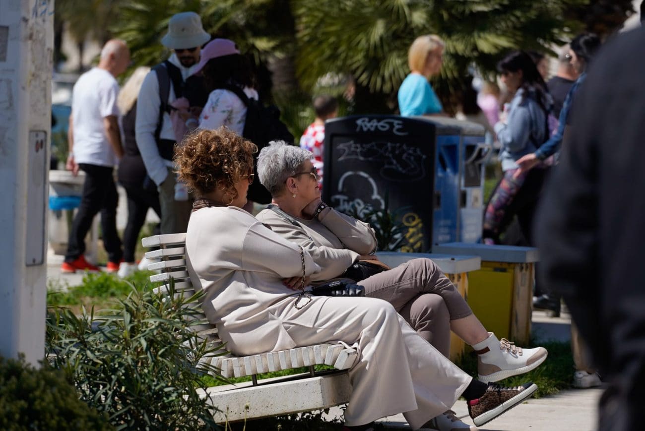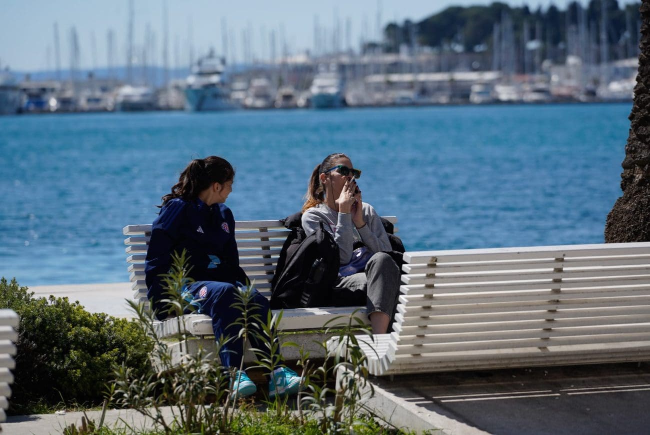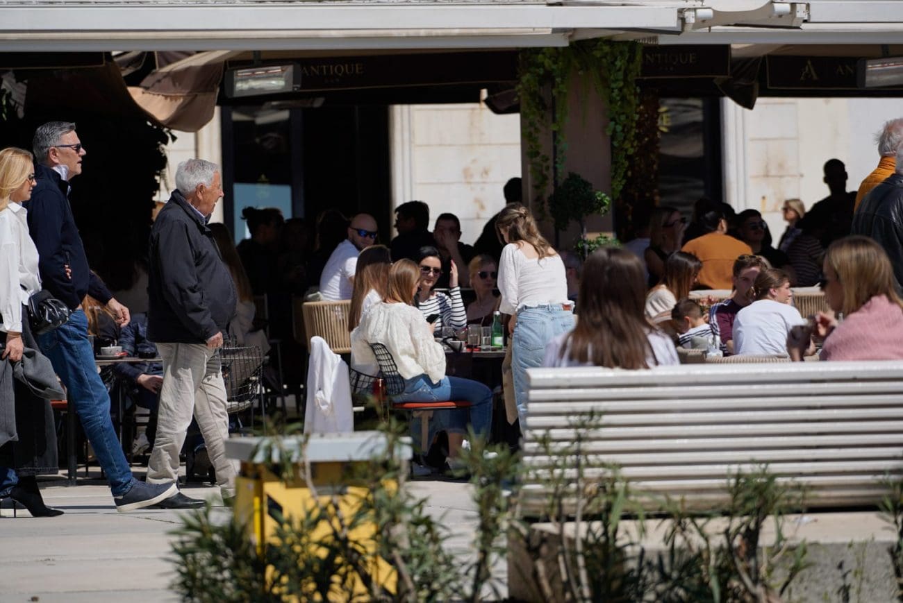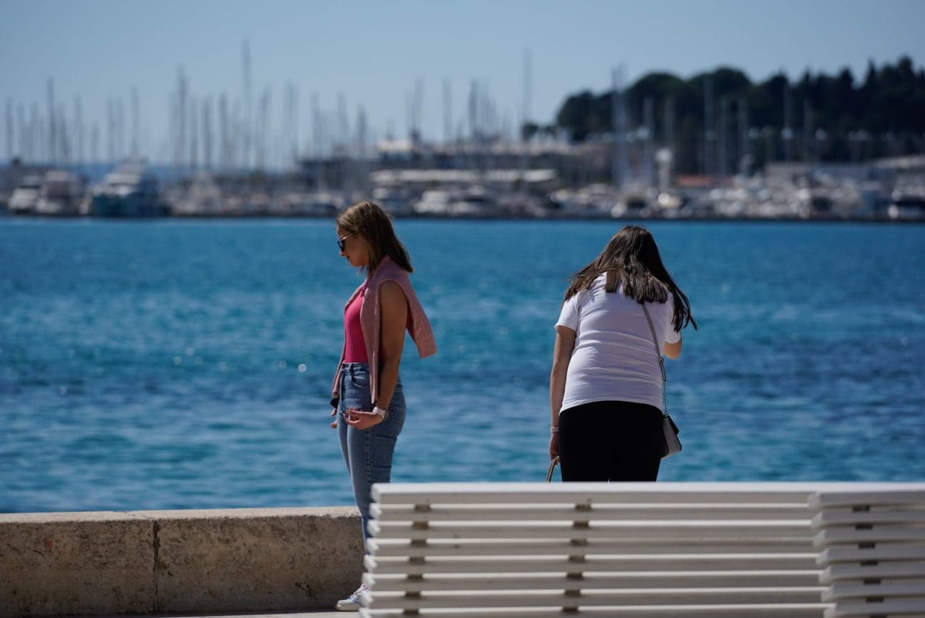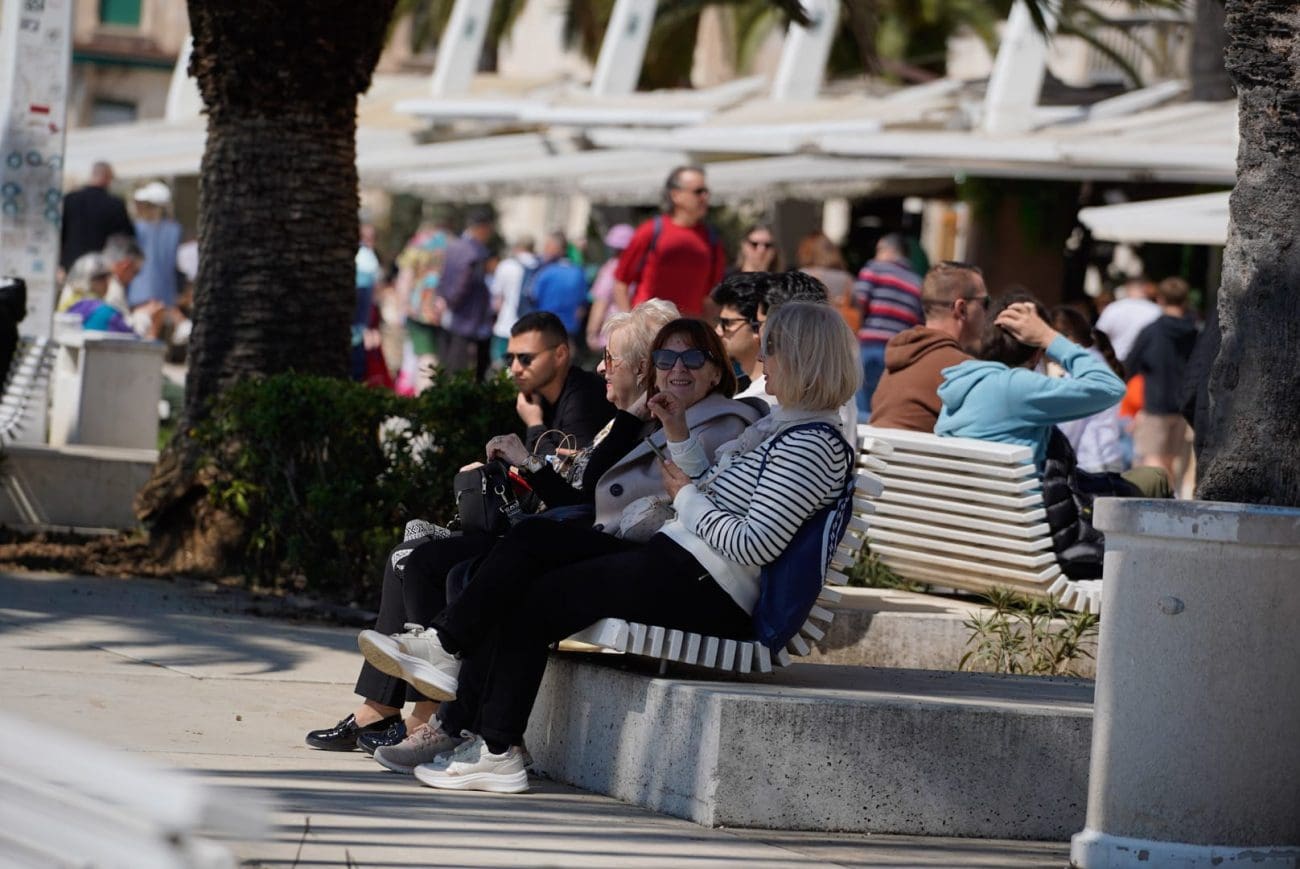 Splićani uživaju u mirnom, no živahnom danu, ispijajući svoju omiljenu kavu na Rivi. Unatoč tome što je početak travnja, splitska šetnica nije prazna od turista. I oni se stapaju u živahnu sliku splitskog života.